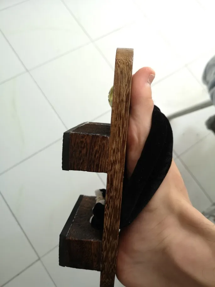 Прикольный деревянные тапочки, дерево мягкое и очень легкое, сидят очень хорошо и плотно, но ходить не очень удобно так-как при натуральной ходьбе носок ударяется об пол, лучше купить с платформой более высокой либо ходить в огороде по земле, так гораздо приятнее. А вообще красивые, рекомендую!