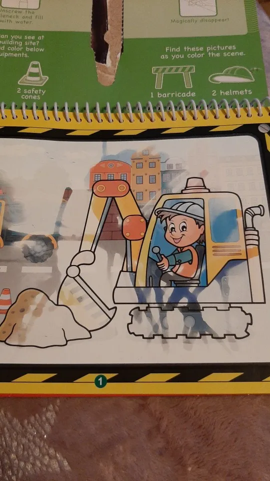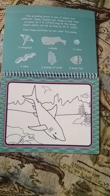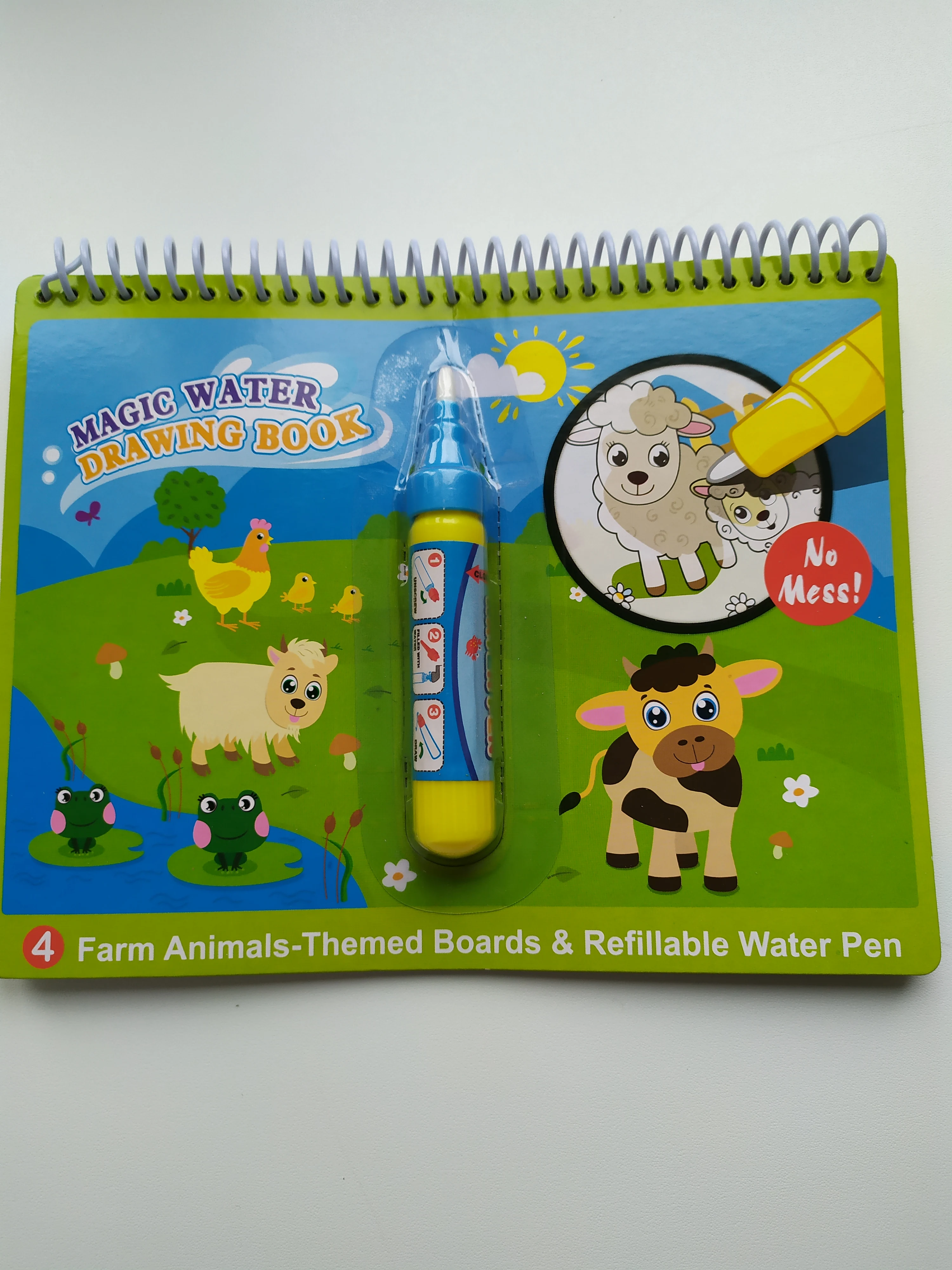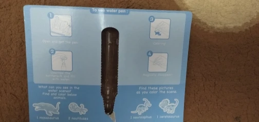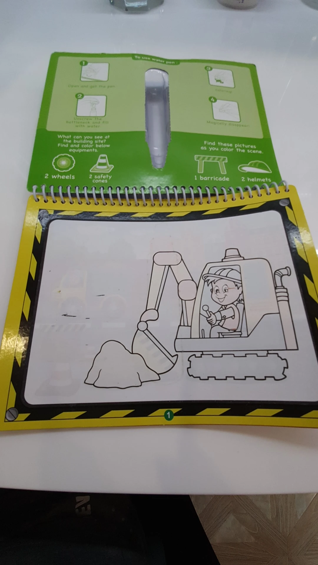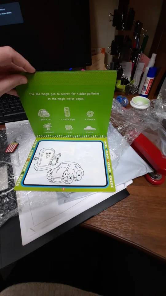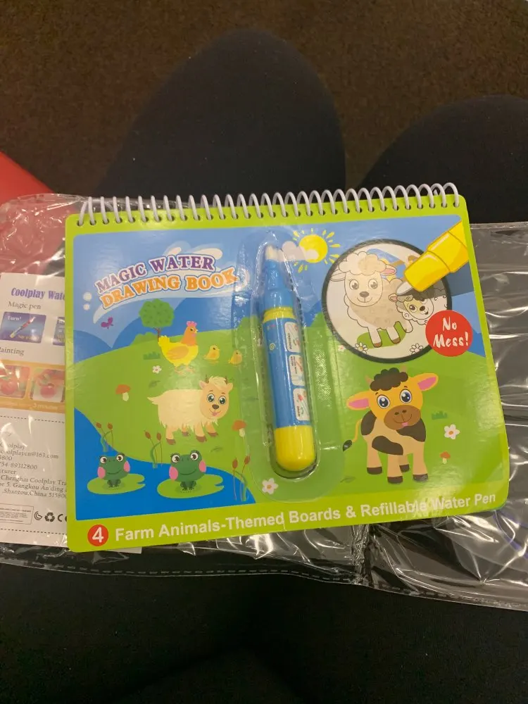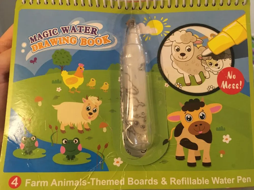 Пришло очень быстро в комплекте с другими посылками. ребенку понравилось разукрашивать картинки. Для того чтобы разукрашивать надо залить водой фломастер. После разукрашивания примерно через час всё высыхает и изображение пропадает и можно снова разукрашивать.)