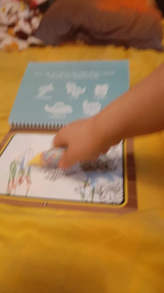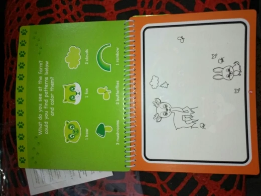 Заказываю не в первый раз, очень нравится и мне, и ребёнку. Яркая, красочная, интересно, что проявляется ещё рисунок, контуров которого нет изначально, то есть сюрприз получается. После высыхания, картинка исчезает и можно раскрашивать заново.