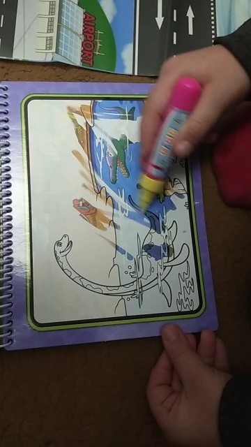 Я в восторге! Потрясающая раскраска! Сохнет быстро! Просто наливаешь воду в маркер и всё) ребёноку интересно, рисует долго) Одно НО, лучше всё таки иметь запасной маркер. Закажу ещё одну другой тематики. Доставка в МО меньше месяца.