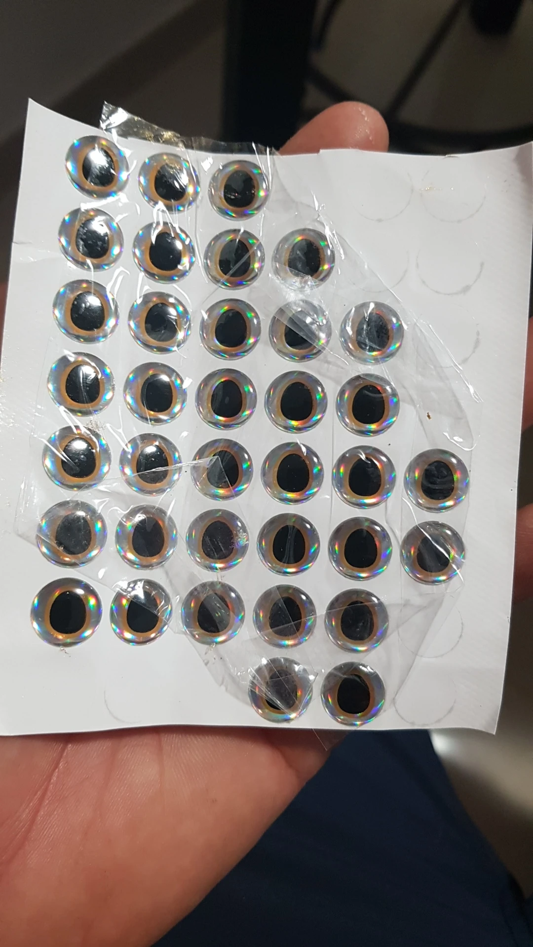 Быстрая доставка, хорошее соотношение цены и качества, точное измерение, они выглядят очень хорошо, я надеюсь, что это не происходит со мной, как с другими, которые при намокании глаза оторвались, теперь я всегда ставлю их на царапины, чтобы приклеить их, а затем на стеклянную эпоксидную смолу.