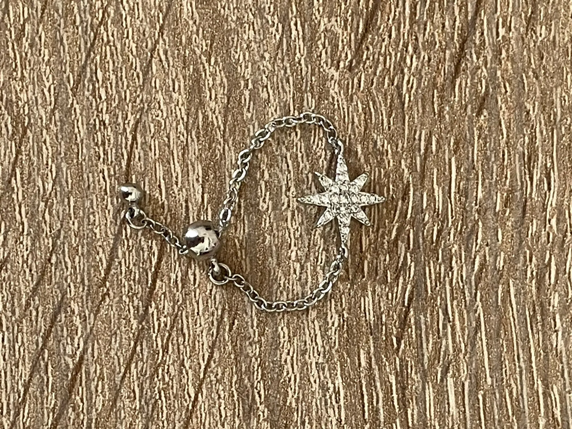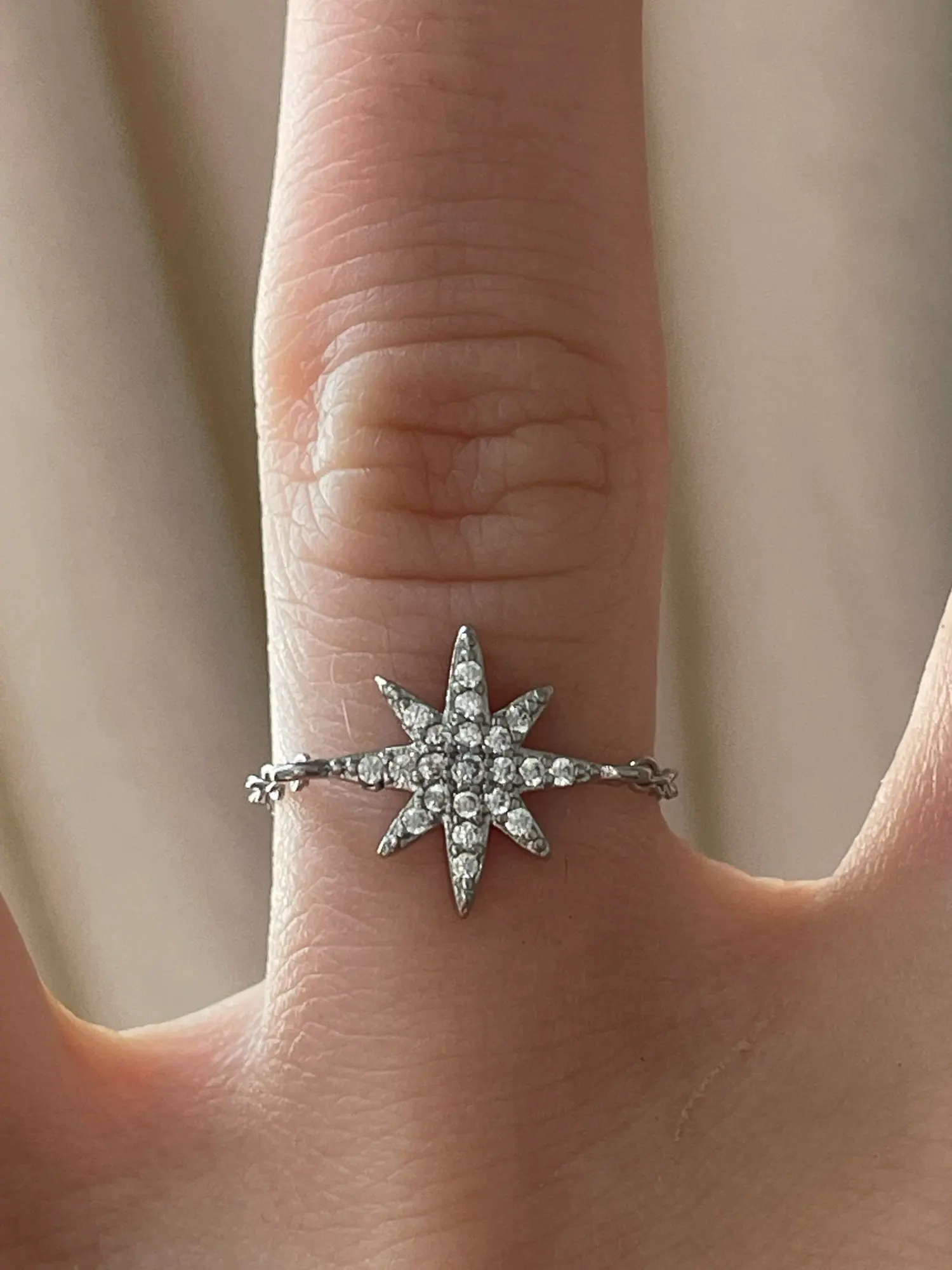 Женское кольцо с микро-фианитом, регулируемая цепочка со сверкающими звездами
