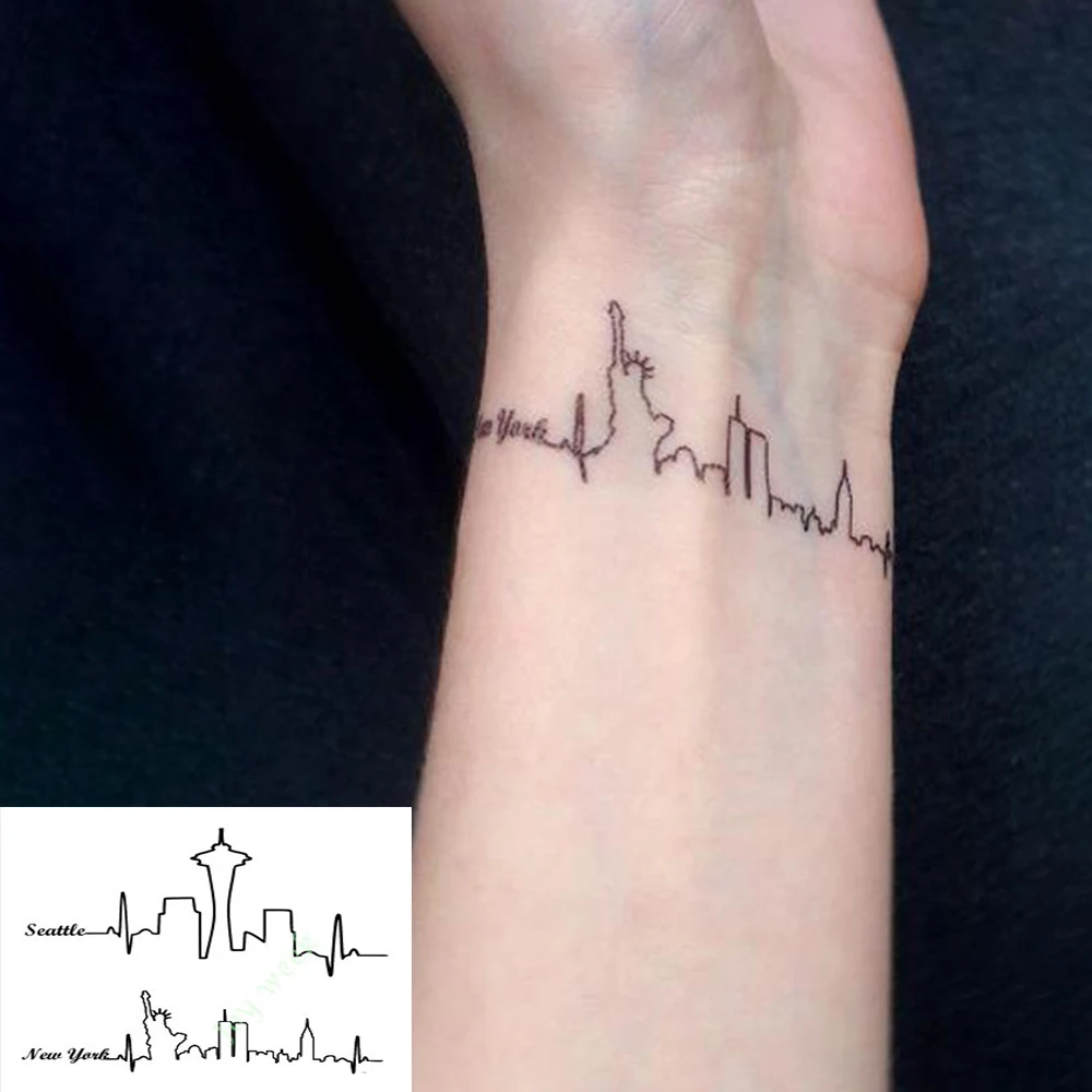 Водостойкая Временная тату-наклейка, Сиэтл, Нью-Йорк, Чикаго, городской пейзаж, простая линия, стрелки, флэш-тату, искусственная тату для женщин