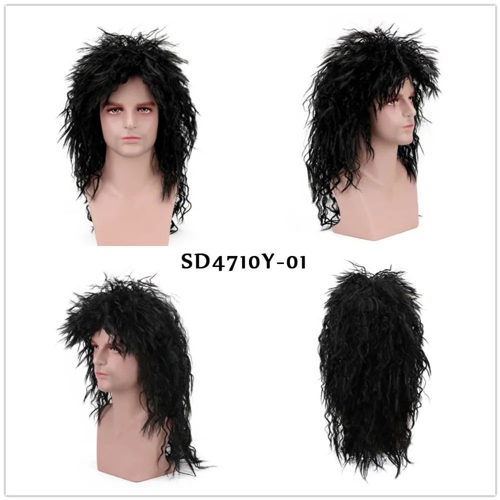 Синтетический парик Free Beauty, Короткие вьющиеся коричневые хиппи мужские 60s 70s, пушистые хиппи волосы с повязкой на голову для тематической вечеринки в стиле древесного склада