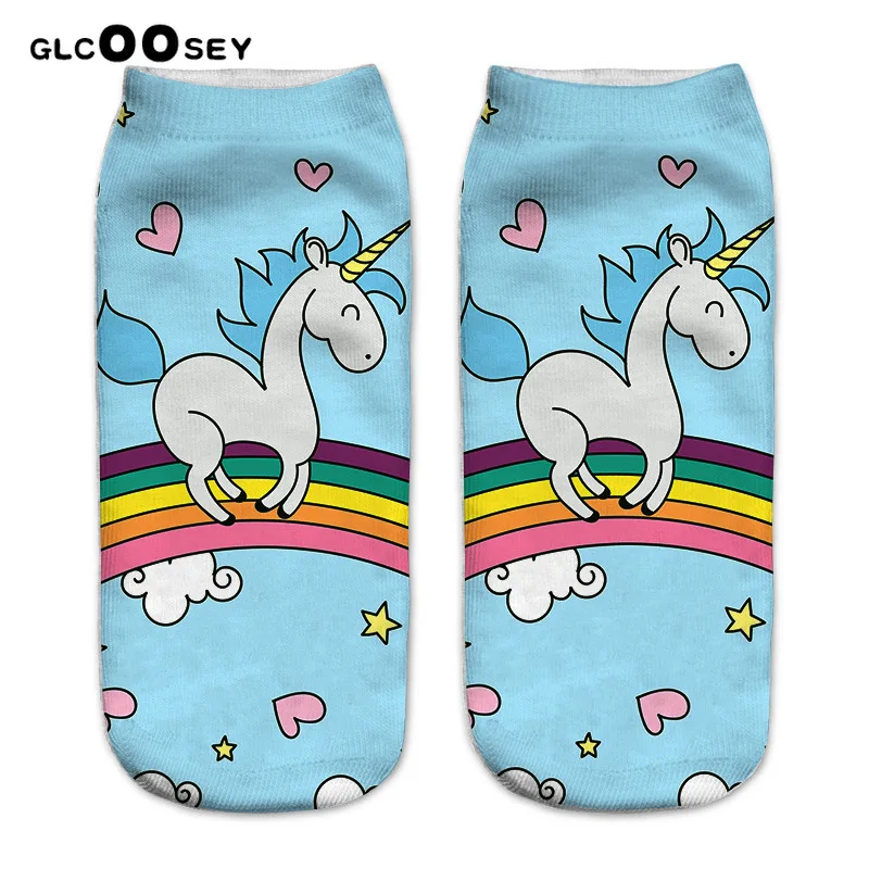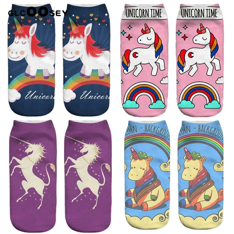 Носки женские летние с 3D-принтом единорога, милые смешные с принтом пони в стиле Харадзюку, европейские размеры 34-42, 1 пара