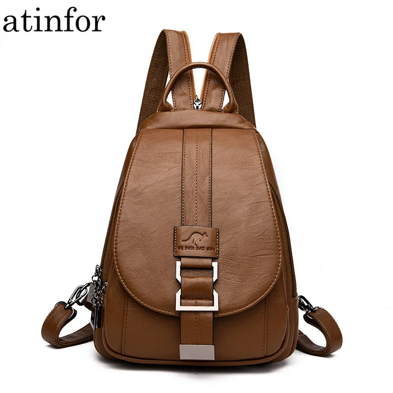 Женский кожаный рюкзак с защитой от кражи, в винтажном стиле