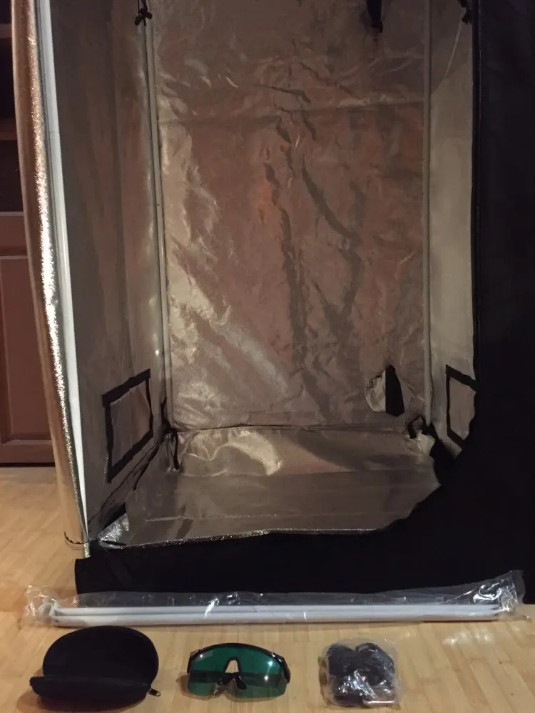 Рада приобретению гроубокса от этого магазина. Во-первых, товар качественный, не возникло никаких проблем при сборке бокса. В комплекте шли подарочки, очки кстати очень важная и полезная вещь, без них слепит лампа в глаза. Во-вторых, доставка быстрая, сдэком до двери. Продавец был всегда на связи, отвечал моментально. Для гроверов добавлю, что влезает 2 растишки по 10 л каждая. Рекомендую!!!