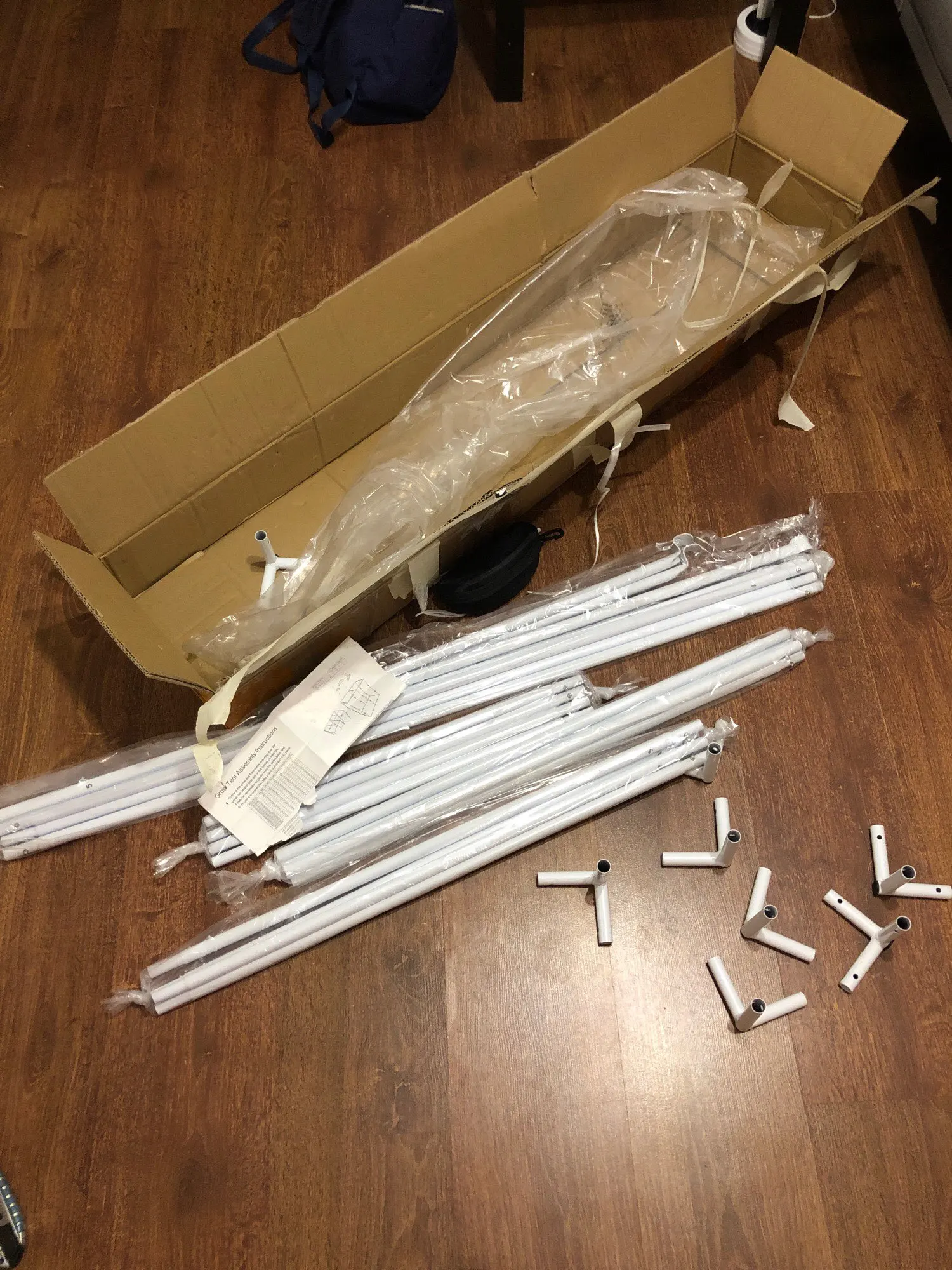Покупали бабушке говорит очень удобная штука собрали за 20 минут. Вроде бы без дыр швы не просвечиваються вообщем очень даже хорошо за эти деньги! Плюс подарок метиостанция, очки, и карабины для подвески крупной лампы нам не понадобились. Доставка быстрая около 10 дней если не меньше. Вообщем довольны продавцом