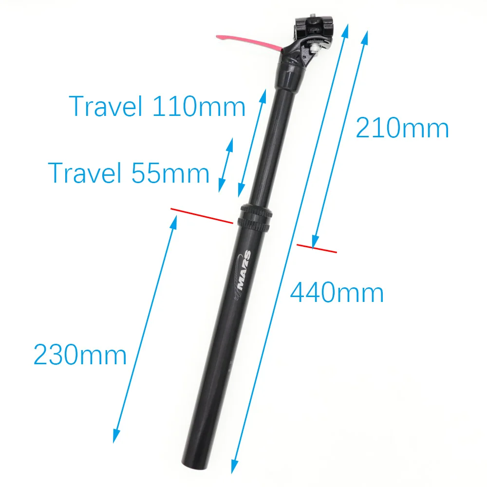 Tmars флакон-капельница Подседельный штырь с регулировкой по высоте, 27,2 дистанционного Управление/ручные механические Подседельный штырь для горного велосипеда MTB мм 28,6 30,1 30,4 30,9 31,6 110mm 55 путешествия подседельный штырь