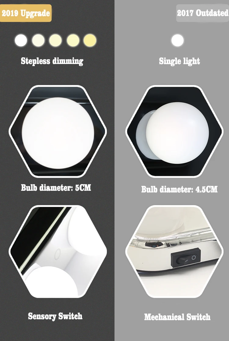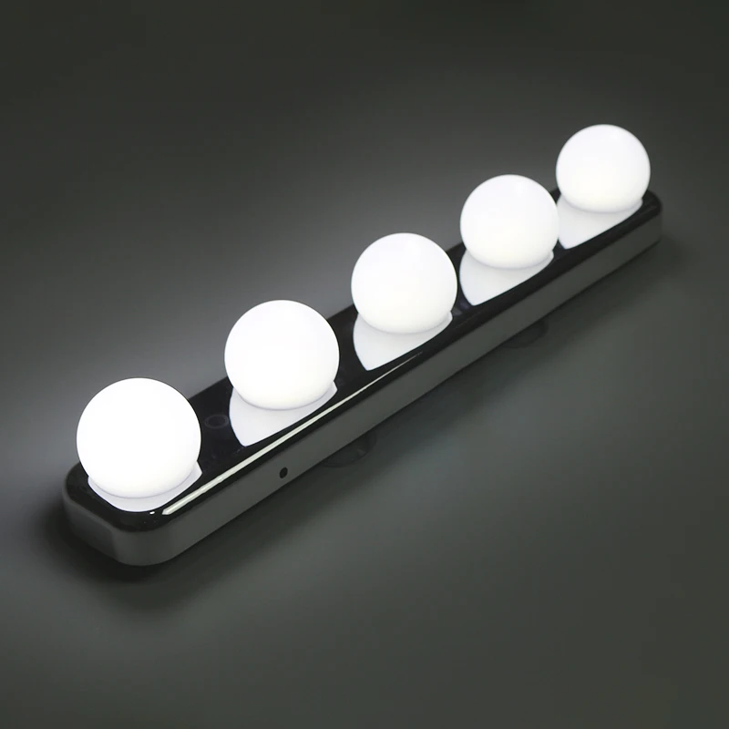 Светодиодный светильник для зеркала для макияжа, 5 лампочек, 3 цвета, плавная регулировка яркости, туалетный столик, настенная лампа для ванной комнаты на батарейках