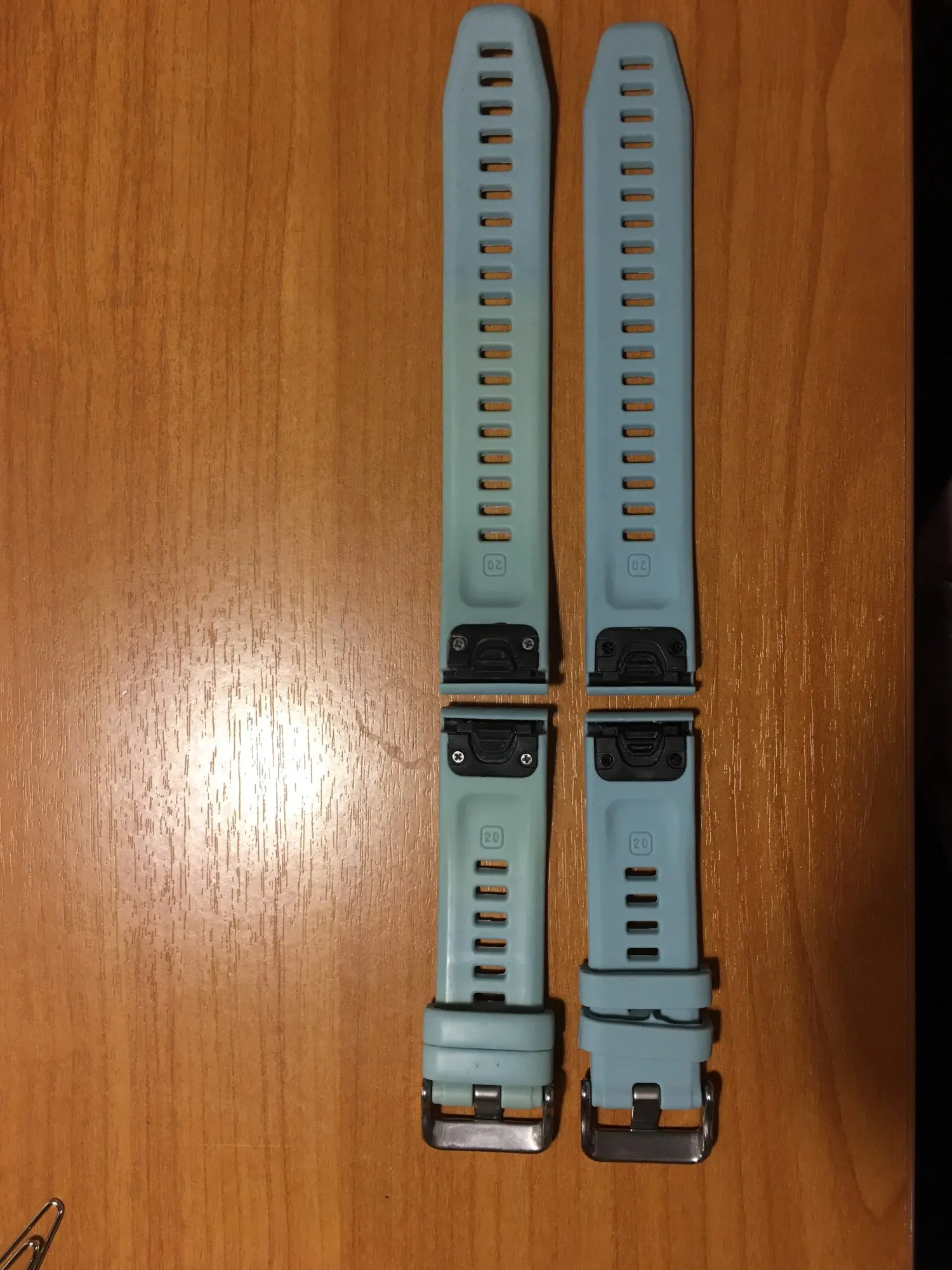 Ремешок приехал достаточно быстро в штаты, три недели, плюс несколько дней в местном почтовом отделении пролежал. Понятно что реплика гарминовских ремешков, но качество неплохое. Резина хорошо тянется. Длинная сторона ремешка длинее чем в оригинале, а вот короткая сторона та что с баклей немного короче оригинальной. Вот такой вот ремешок.