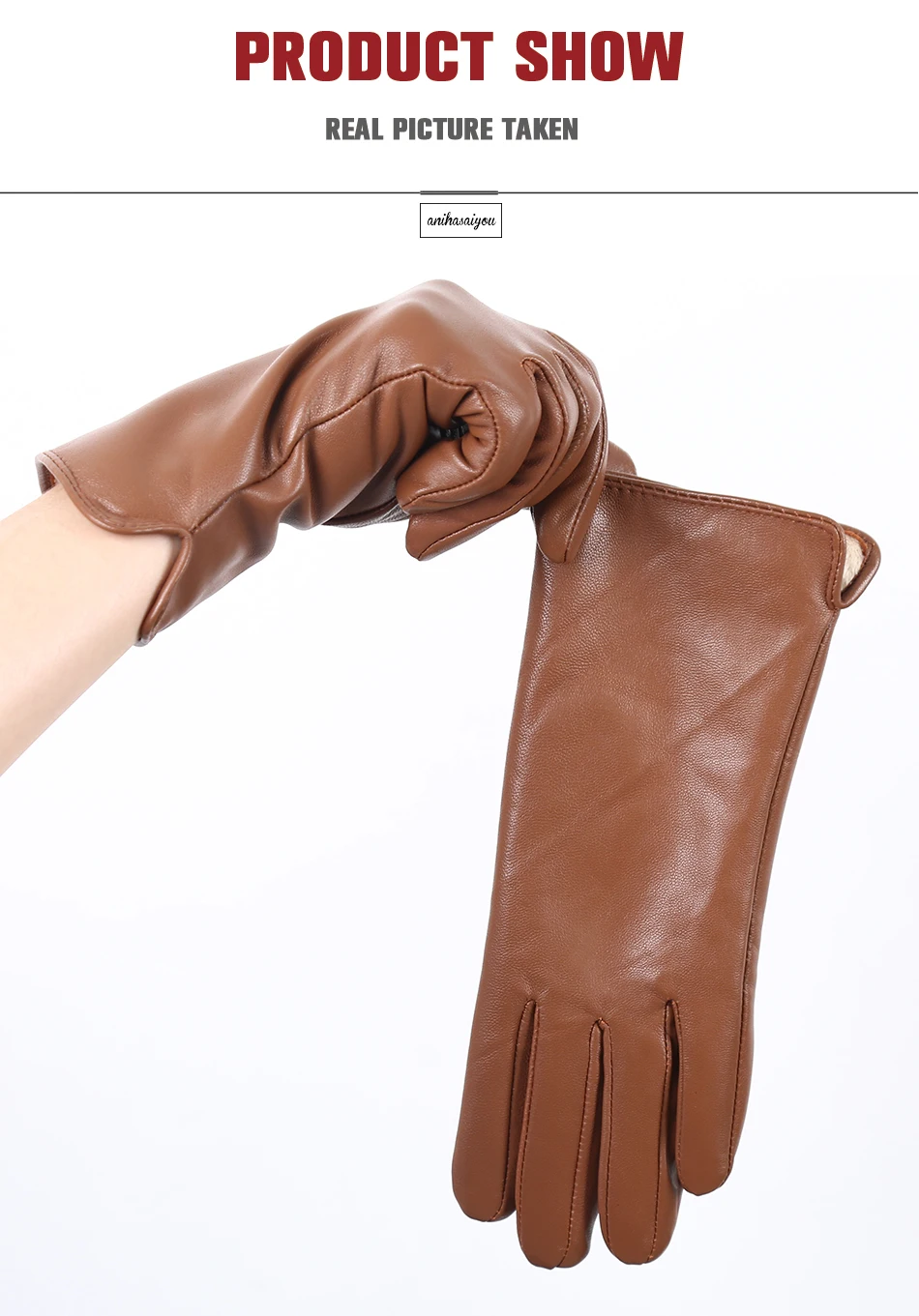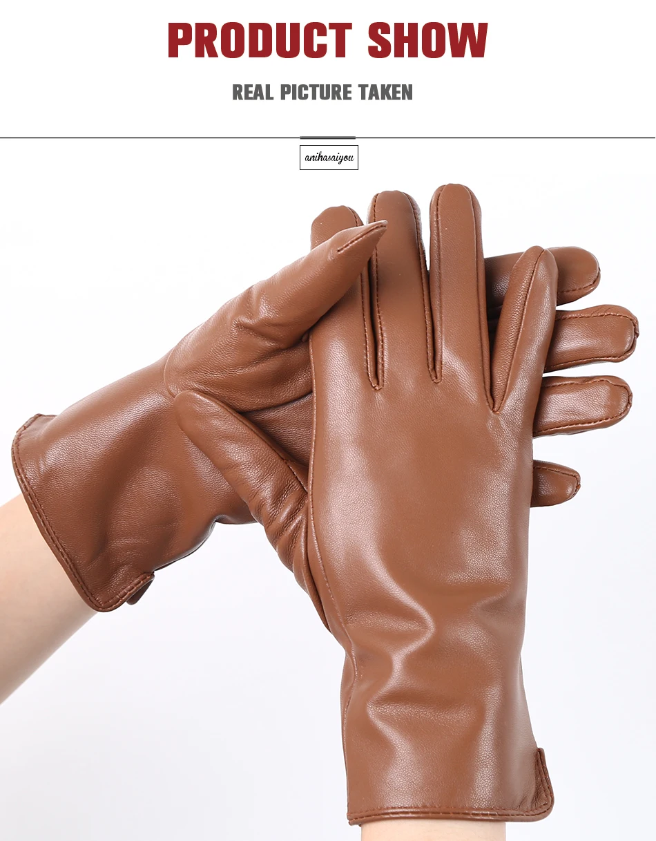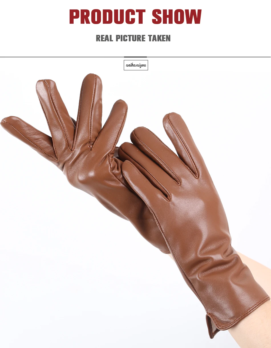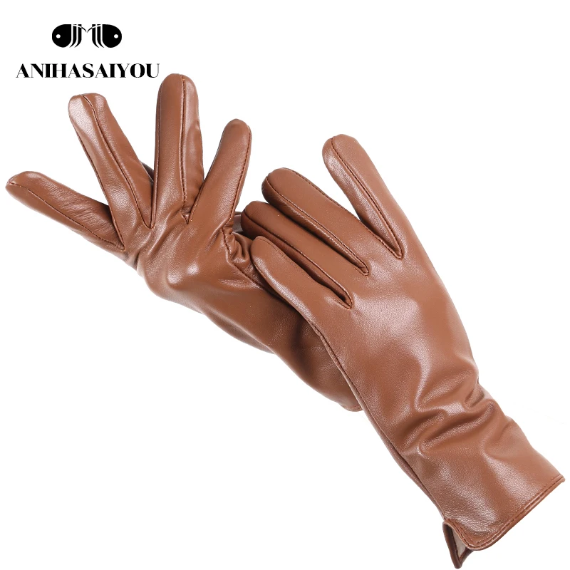 Простые кожаные перчатки для женщин, женские кожаные перчатки из натуральной кожи, женские перчатки из овчины, высококачественные теплые варежки для женщин зима-0720
