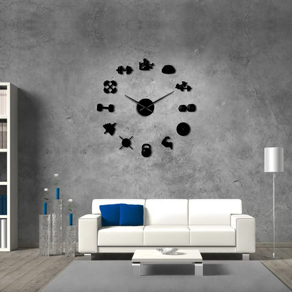Оборудование для спортивного зала Спорт DIY настенные наклейки фитнес гантели гигантские настенные часы бескаркасные большие настенные часы тренировки подарок
