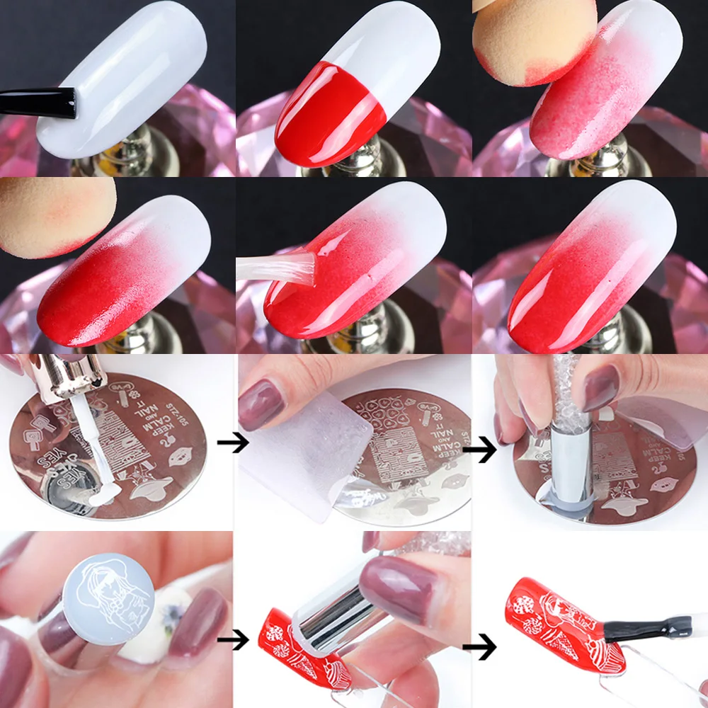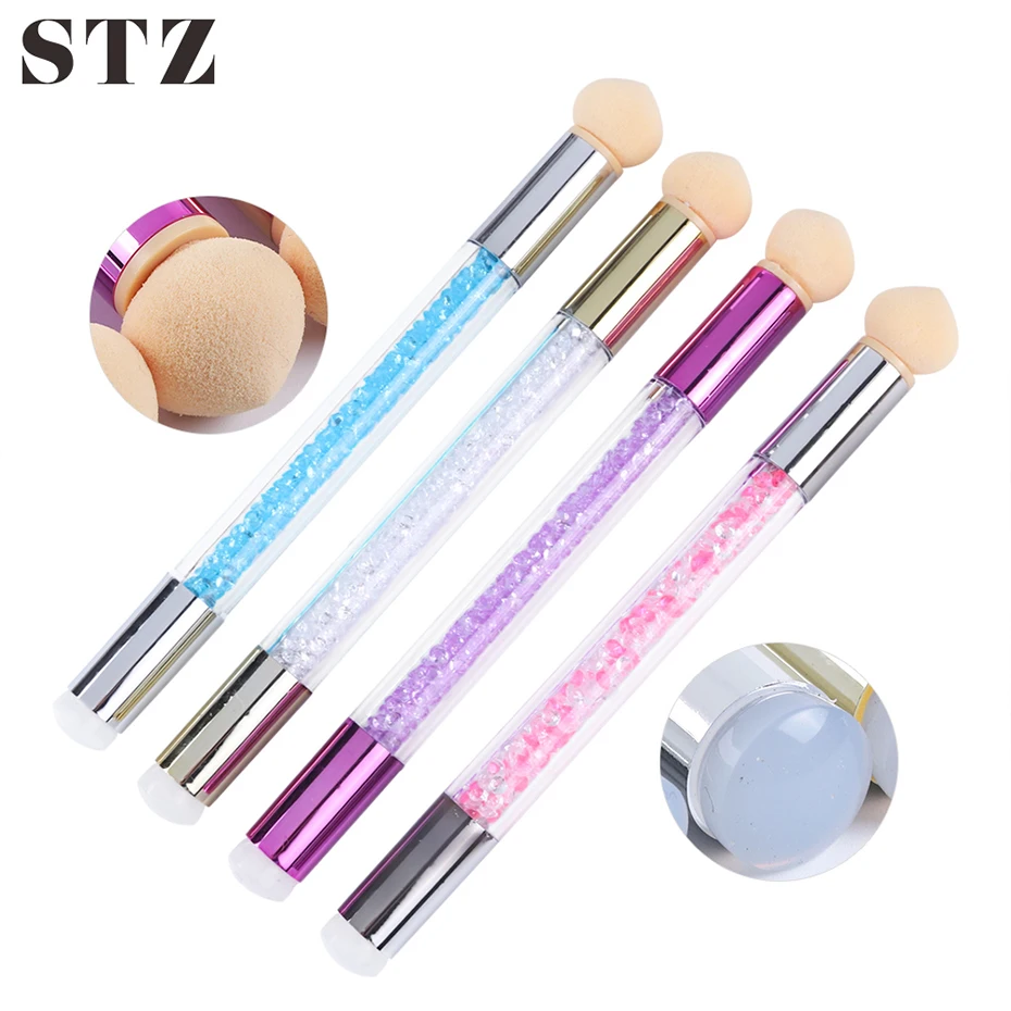 Набор для маникюрного дизайна ногтей STZ, маникюрные щетки, губка, блестящий Гель-лак, градиентный рисунок, карандаш для нанесения страз скребок, инструмент для дизайна ногтей #944