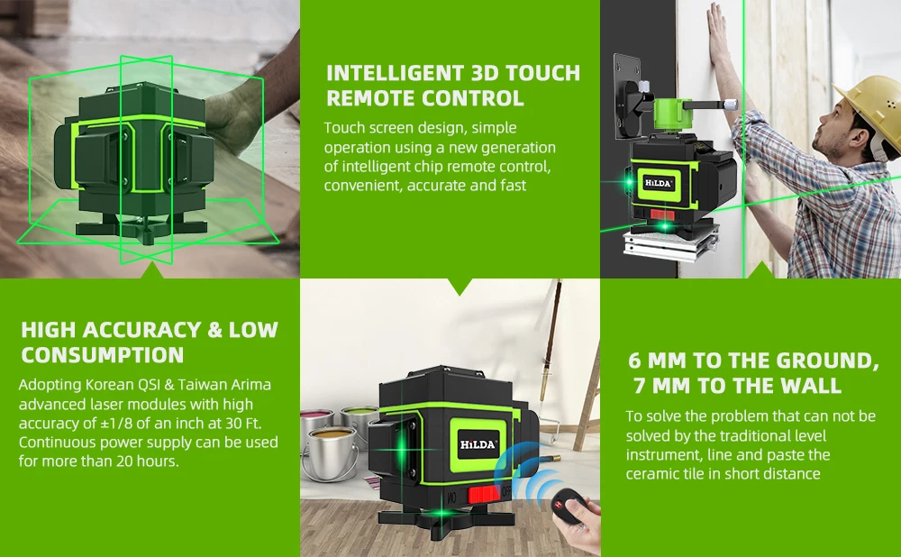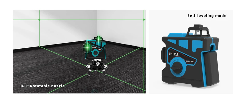 HILDA лазерный уровень 12 линий, HILDA мощный 3D лазерный уровень самовыравнивания, зеленый