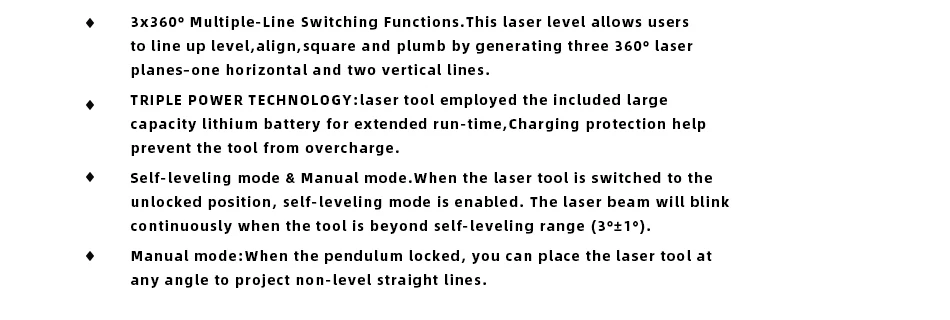 Laser level works wery good. The laser line is sharp and thin as it should be. I recommend this product and the seller. Shipment was extremely fast.