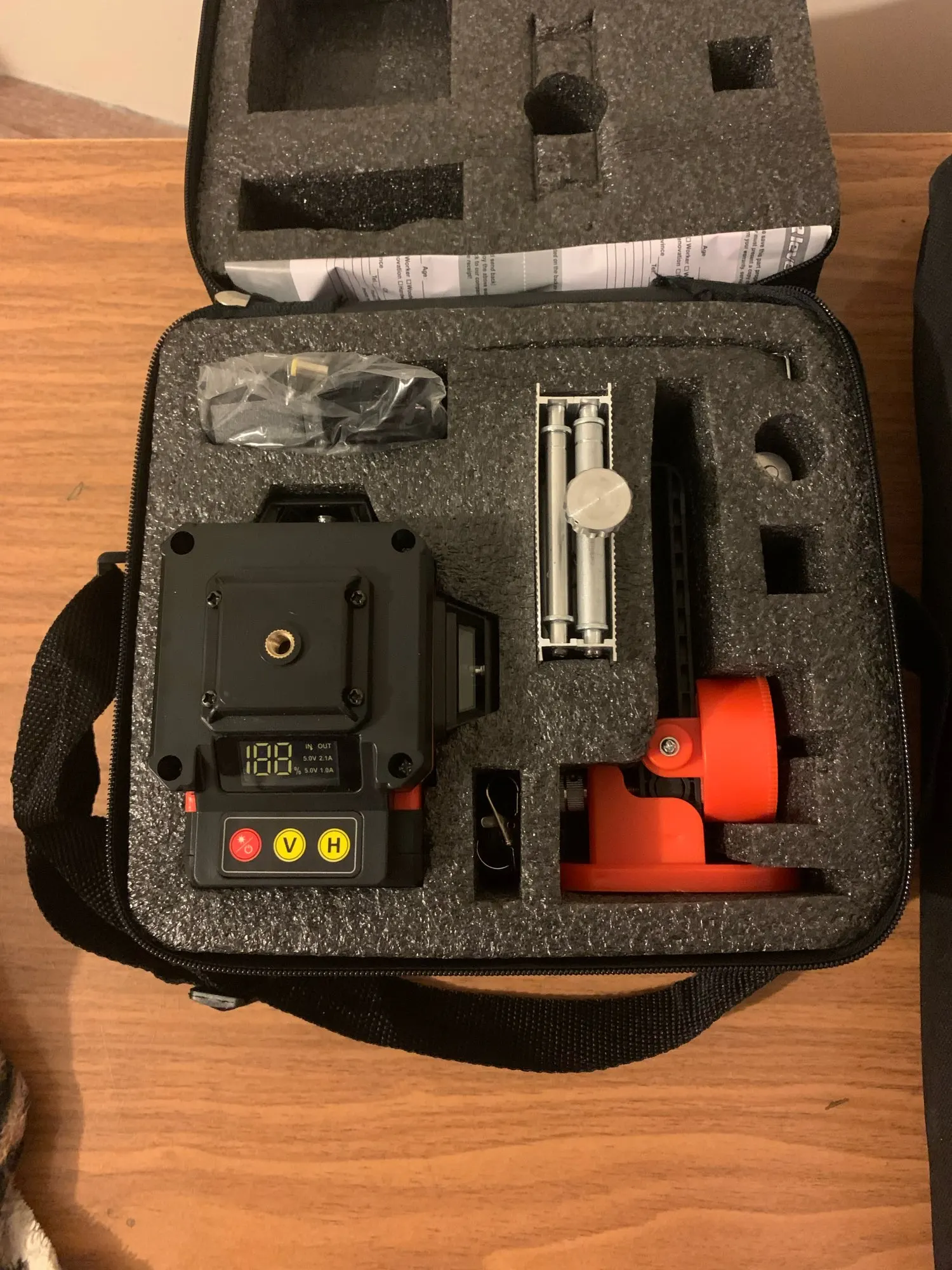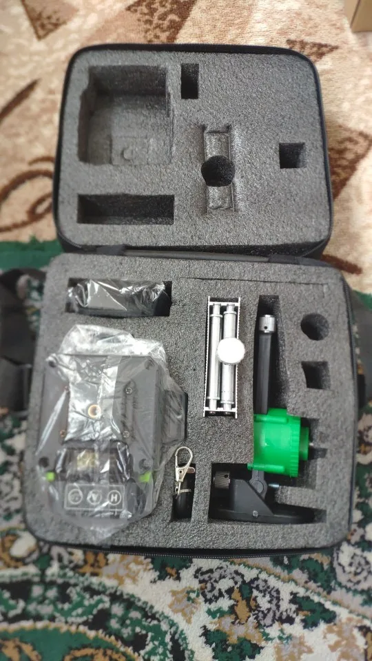 лазерный 3D уровень пришло очень быстро курьер доставил прям до двери .Прибор хорошего качества, очень хорошая сборка ,лазерный луч яркий и четкий, работает без нареканий все отлично, одно только плохо нет поворотной платформы, к штативу приурочивается наглухо, и поэтому очень не удобно настраивать вертикальный луч.