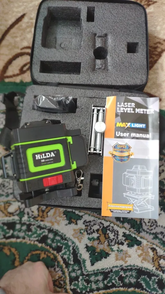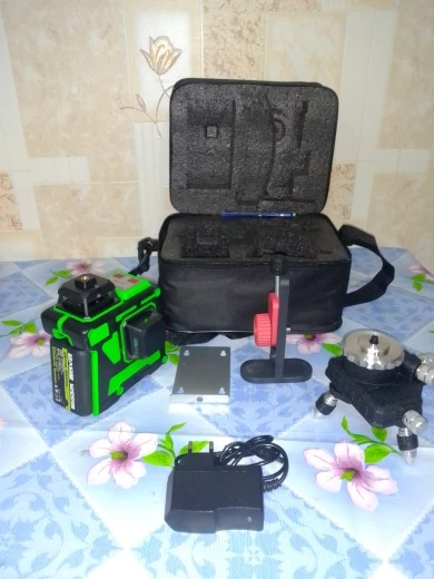 Добрый день дорогие друзья,честно говоря лазерный уровень просто бесподобен,всё пришло в идеальном состояние,покупкой доволен,продавца рекомендую,попробовал на деле линии зелёные видны по всему периметру комнаты...зачёт