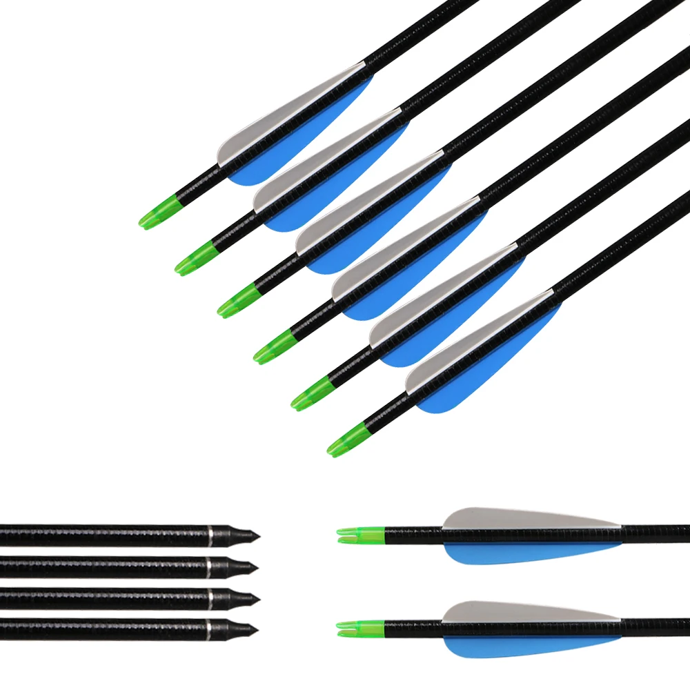 61224 шт 31-дюймовые охотничьи стрелы из стекловолокна для стрельбы из лука с голубымбелым пером для блочного Лука и изогнутого лука, стрела для спорта