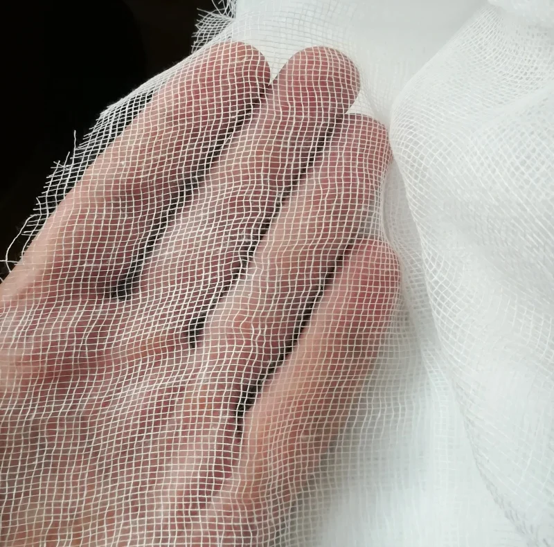 Наша обычная марля с достаточно большыми ячейками. На фото выглядит более плотный материал.