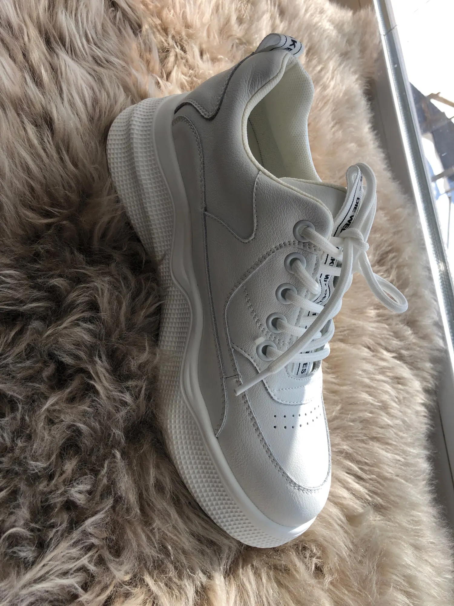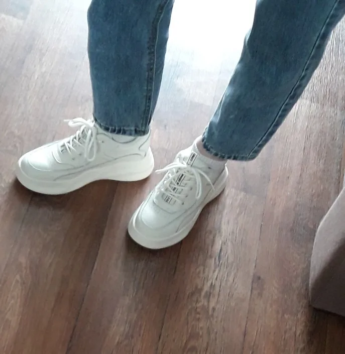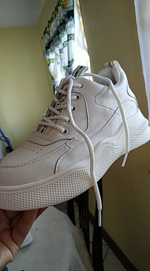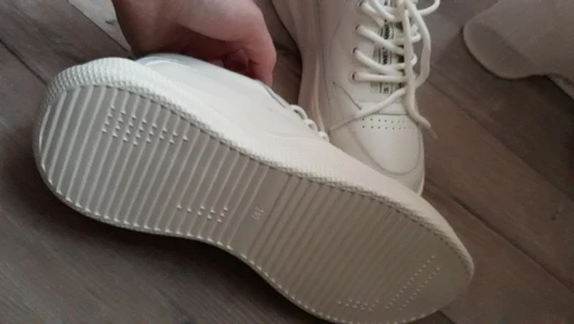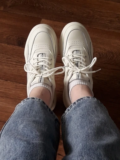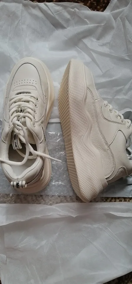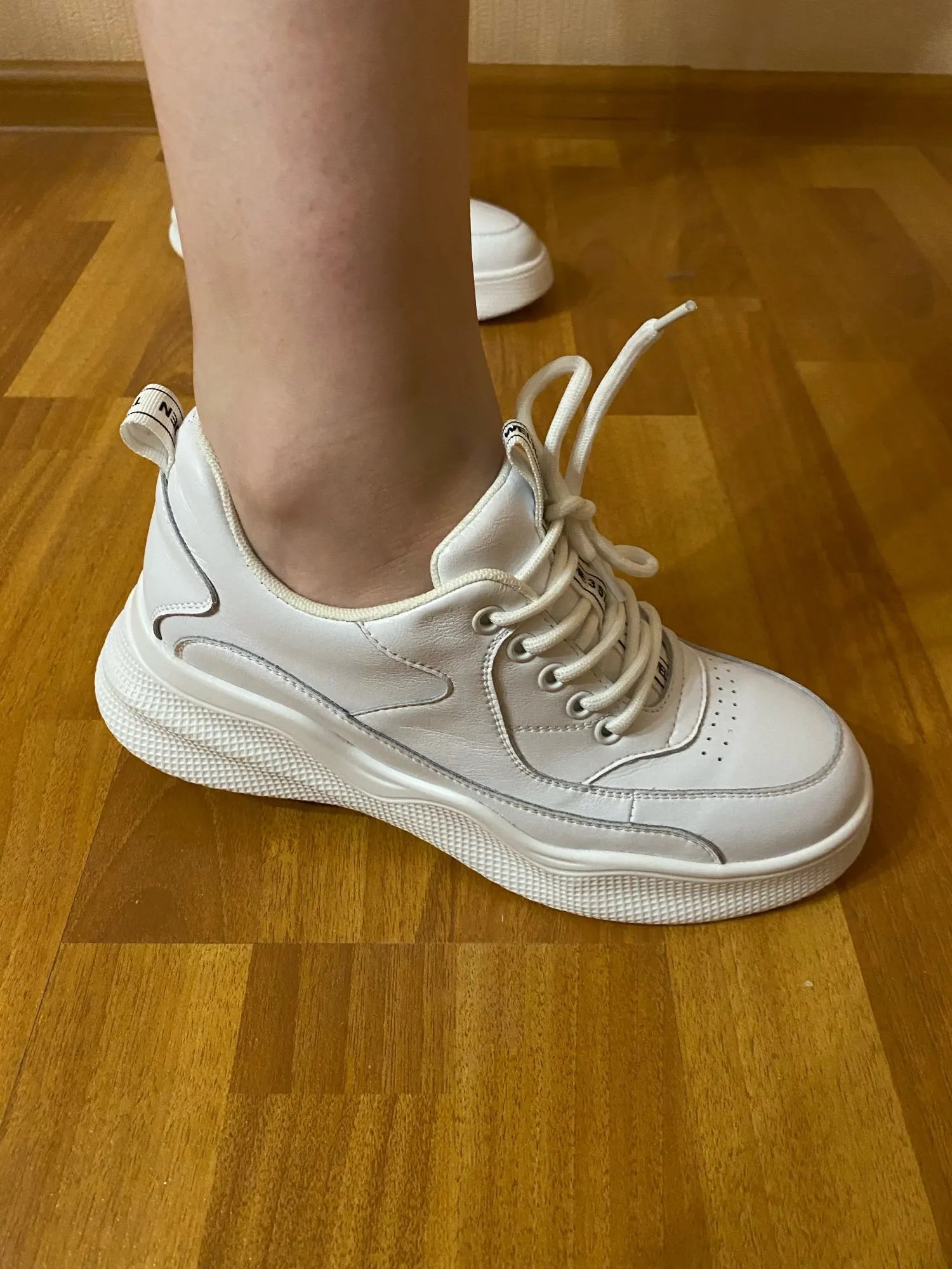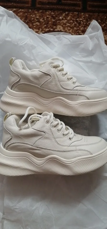 Супер кроссовки! Мягкие и удобные, как тапочки. Танкетка не чувствуется. На стопу 24 см идеально подошёл 38 размер. Аккуратно сделаны, строчки ровные, видно, что из натуральной кожи. Есть запах, но думаю выветрится. До Риги дошли за 43 дня, упакованы хорошо, не в коробке. Продавец положил носочки капроновые. В общем, все супер! Рекомендую обувь, продавец классный.