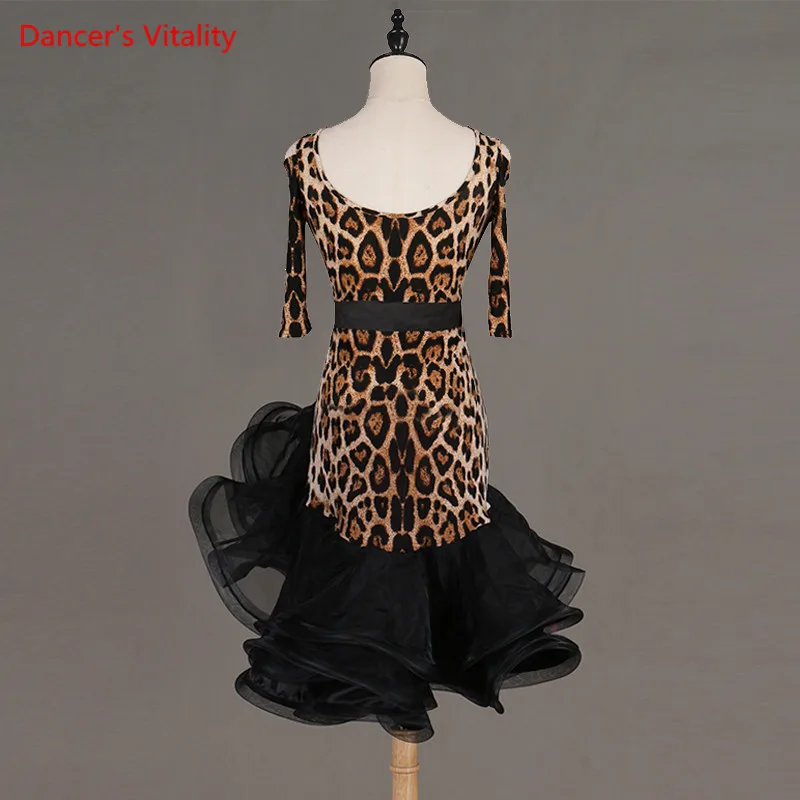 Женское леопардовое платье для латинских танцев на заказ, платье для Тангорумбысамбыбальных танцев с коротким рукавом и v-образным вырезом