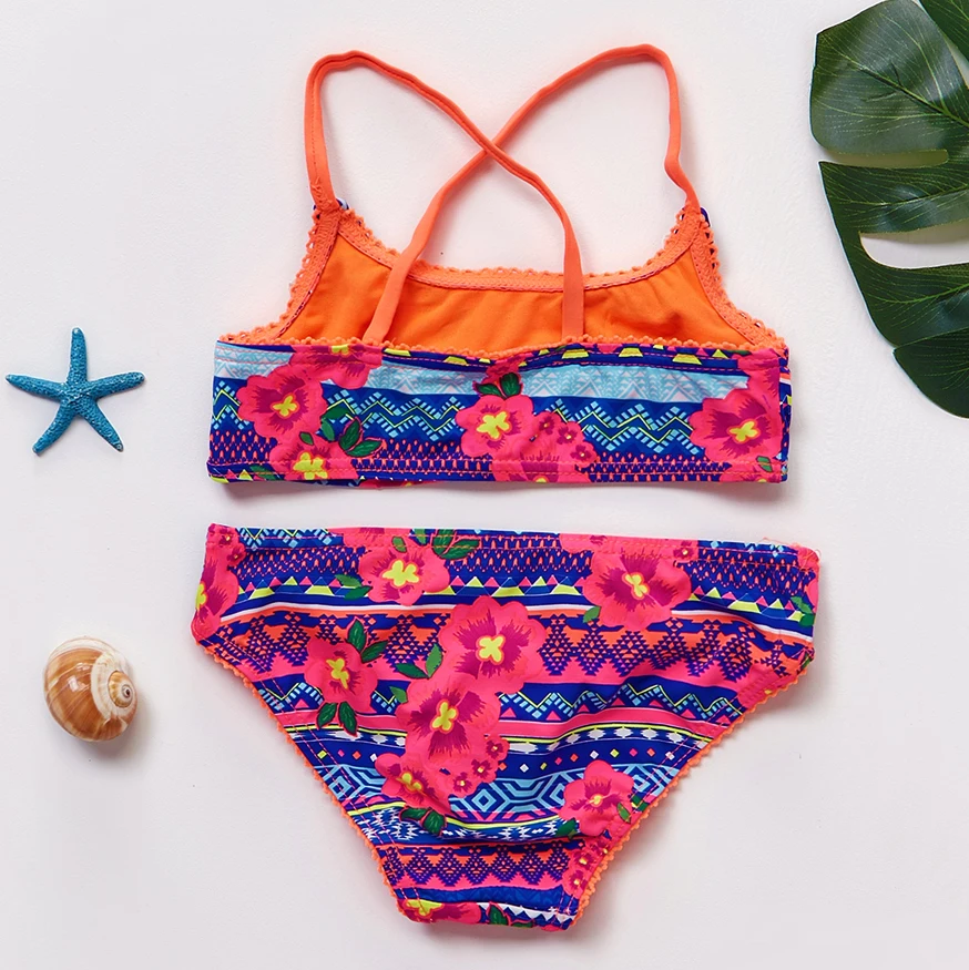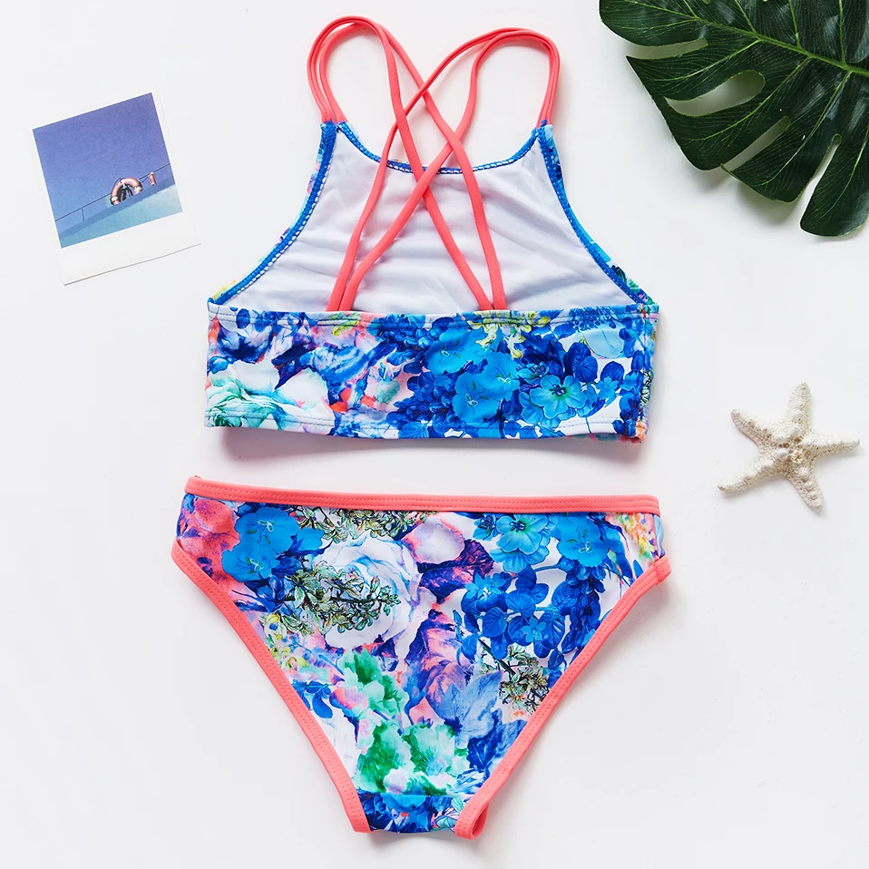 Детский купальник для девочек 6-15 лет, Раздельный купальник высокого качества с цветочным принтом, детский пляжный костюм, wear-ST135