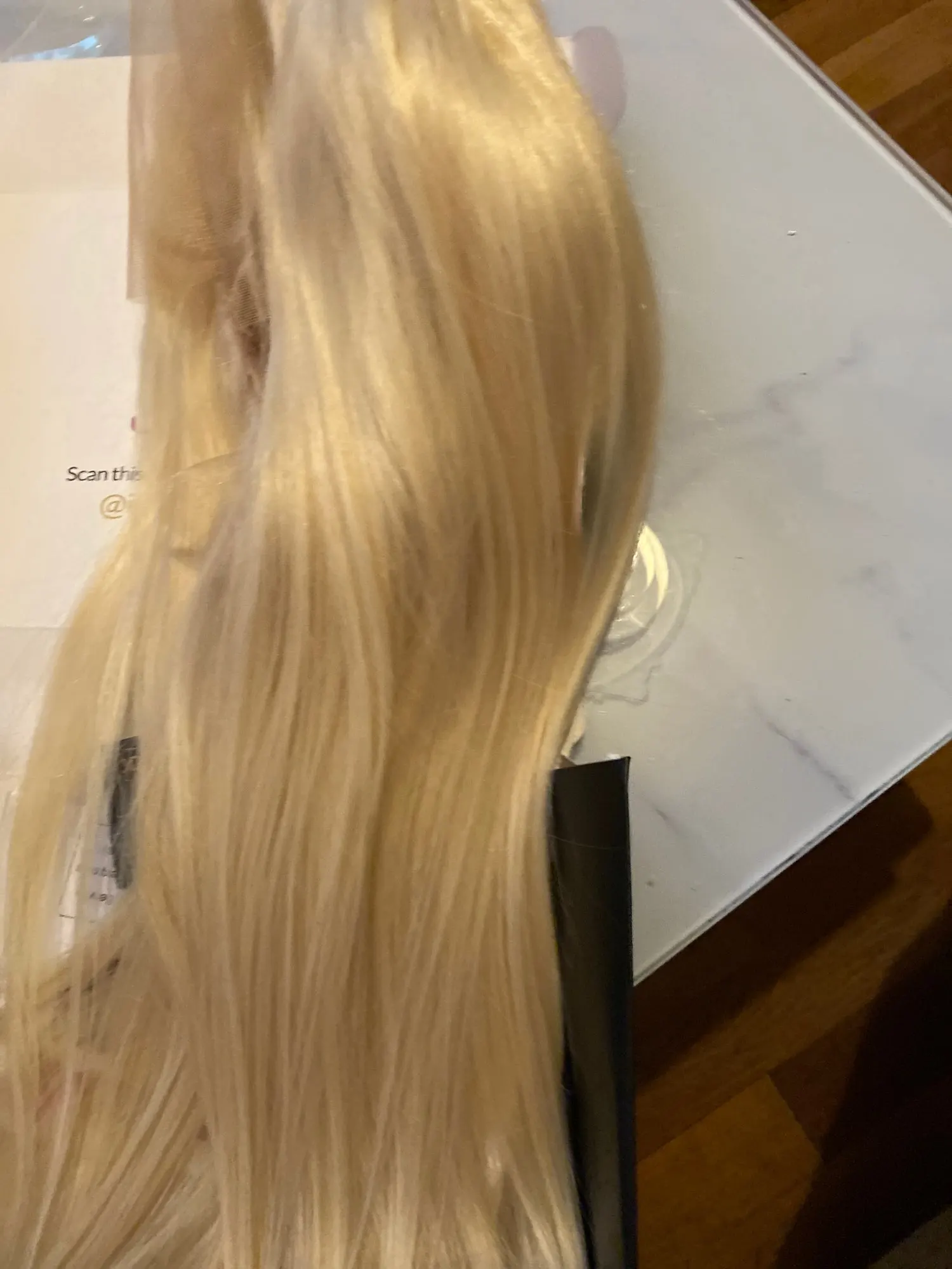 Очень хороший парик хорошего качества, нужен шампунь фиолетового/синего цвета, чтобы смягчить желтый цвет, но это не мешает, качество прядей супер крутое, но немного тонкое в конце, доставка занимает около 1 недели, если у вас есть qst