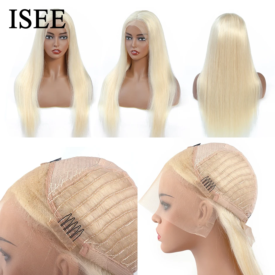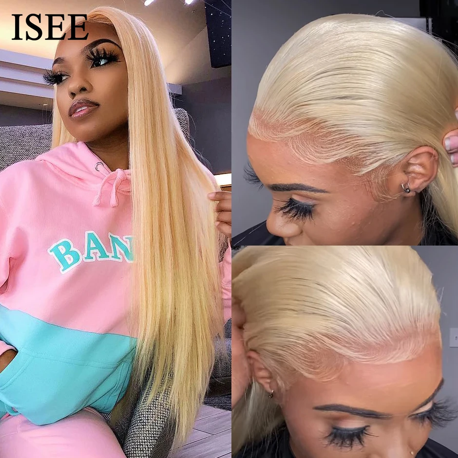 Парик из 613 прямых бразильских волос ISEE, плотность 150%, прямые, медовый блонд, натуральные волосы для женщин