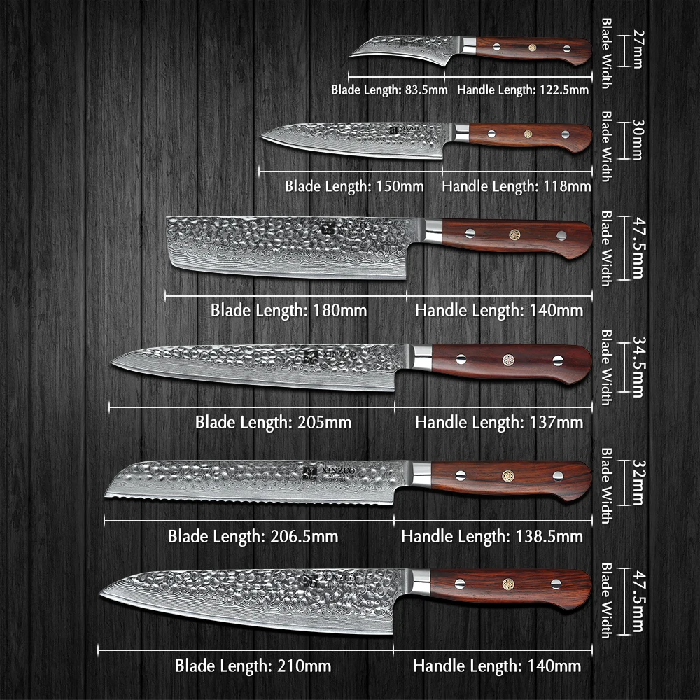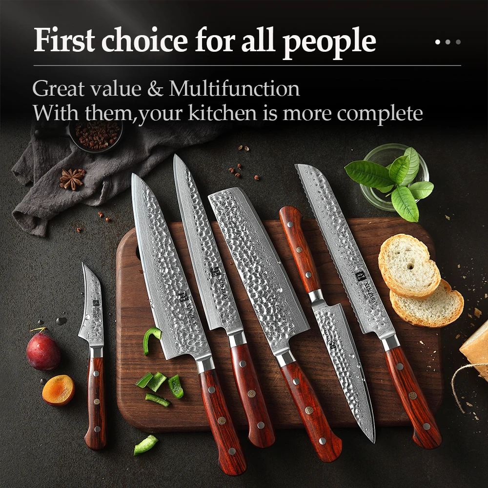Ножи XINZUO из дамасской стали, 7 дюймов, с ручкой из розового дерева