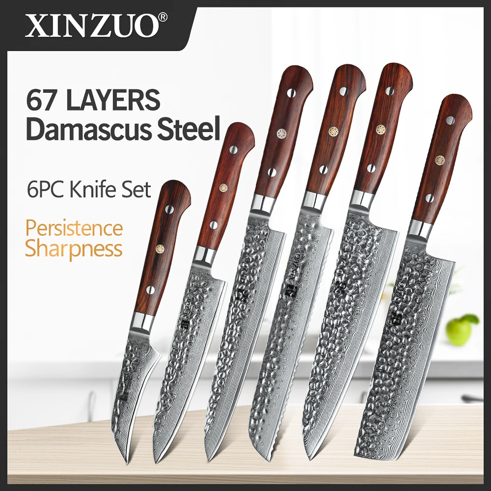 XINZUO набор кухонных ножей, японский 67 дамасский кухонный нож из ...