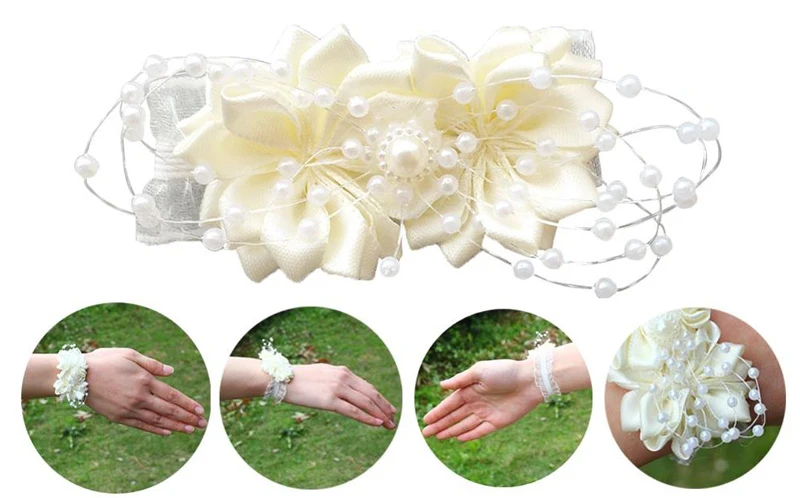 Wifelai-a запястье корсаж Свадьба Невеста лента цветы бусины браслет Подвеска невесты шелковая лента запястье Corsag Свадьба SW0679