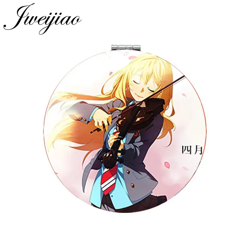 JWEIJIAO мультфильм девушки фото PU зеркало в кожаной оправе для макияжа Круглый складной карман 1X/2X увеличительное зеркало