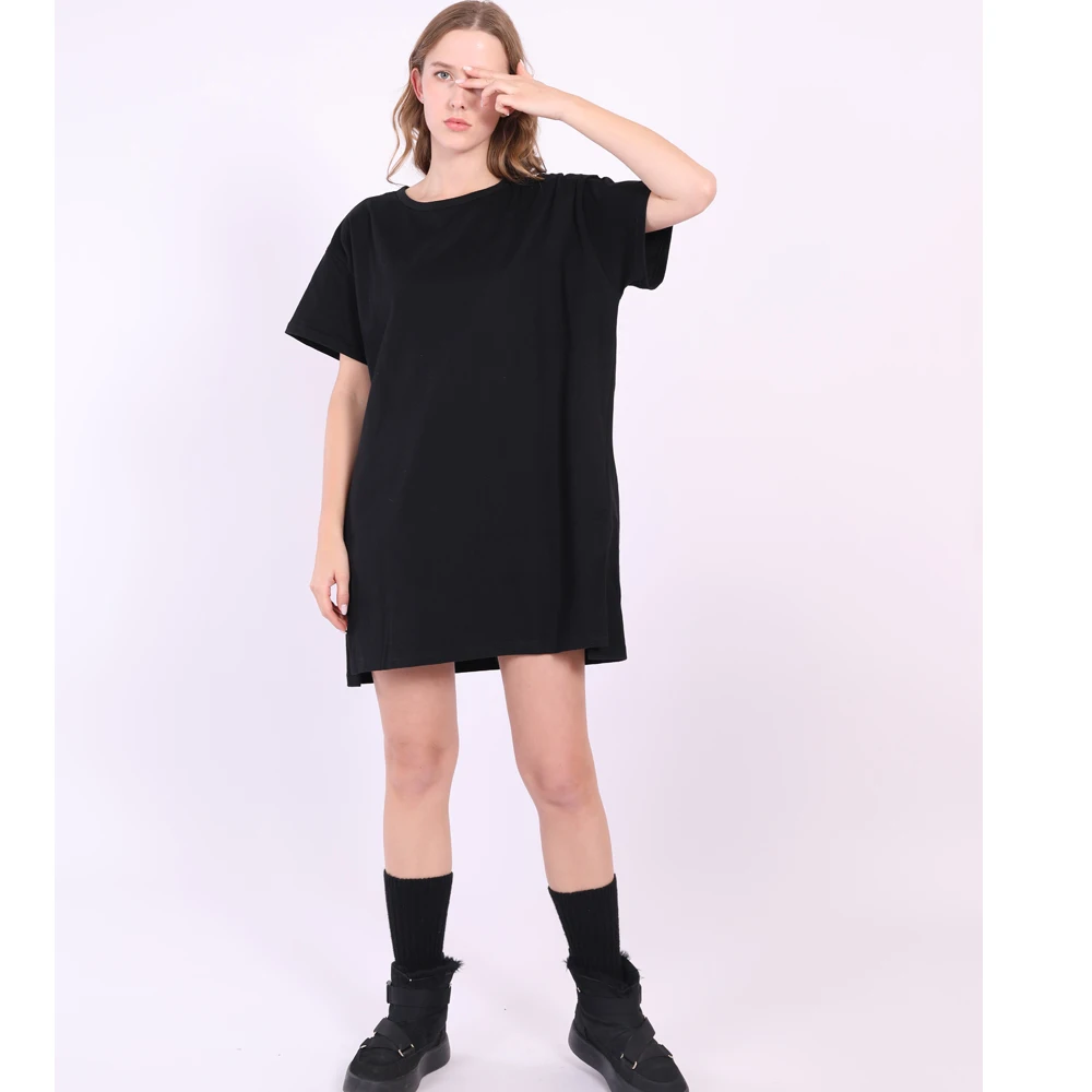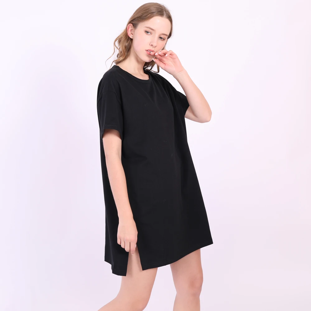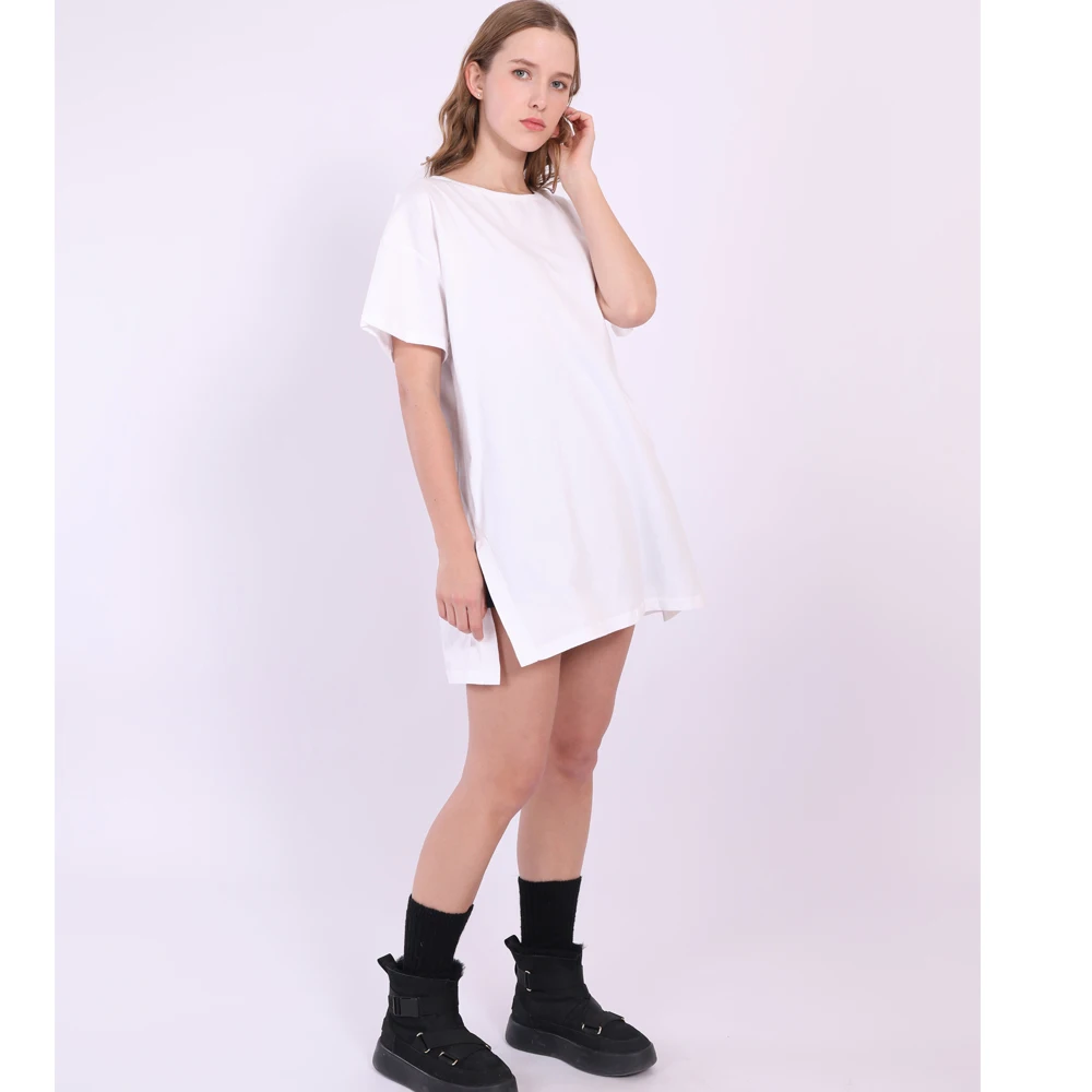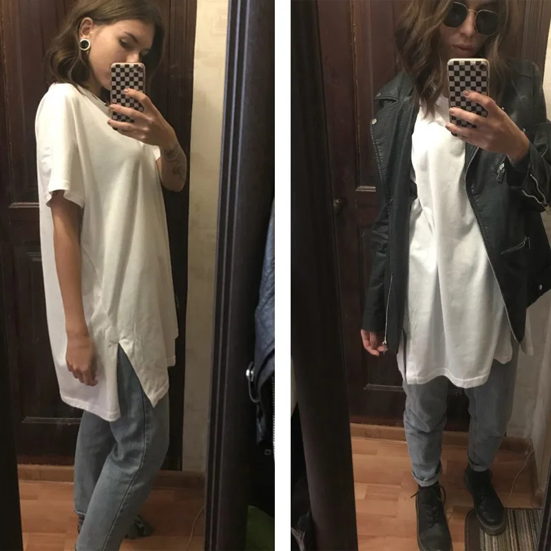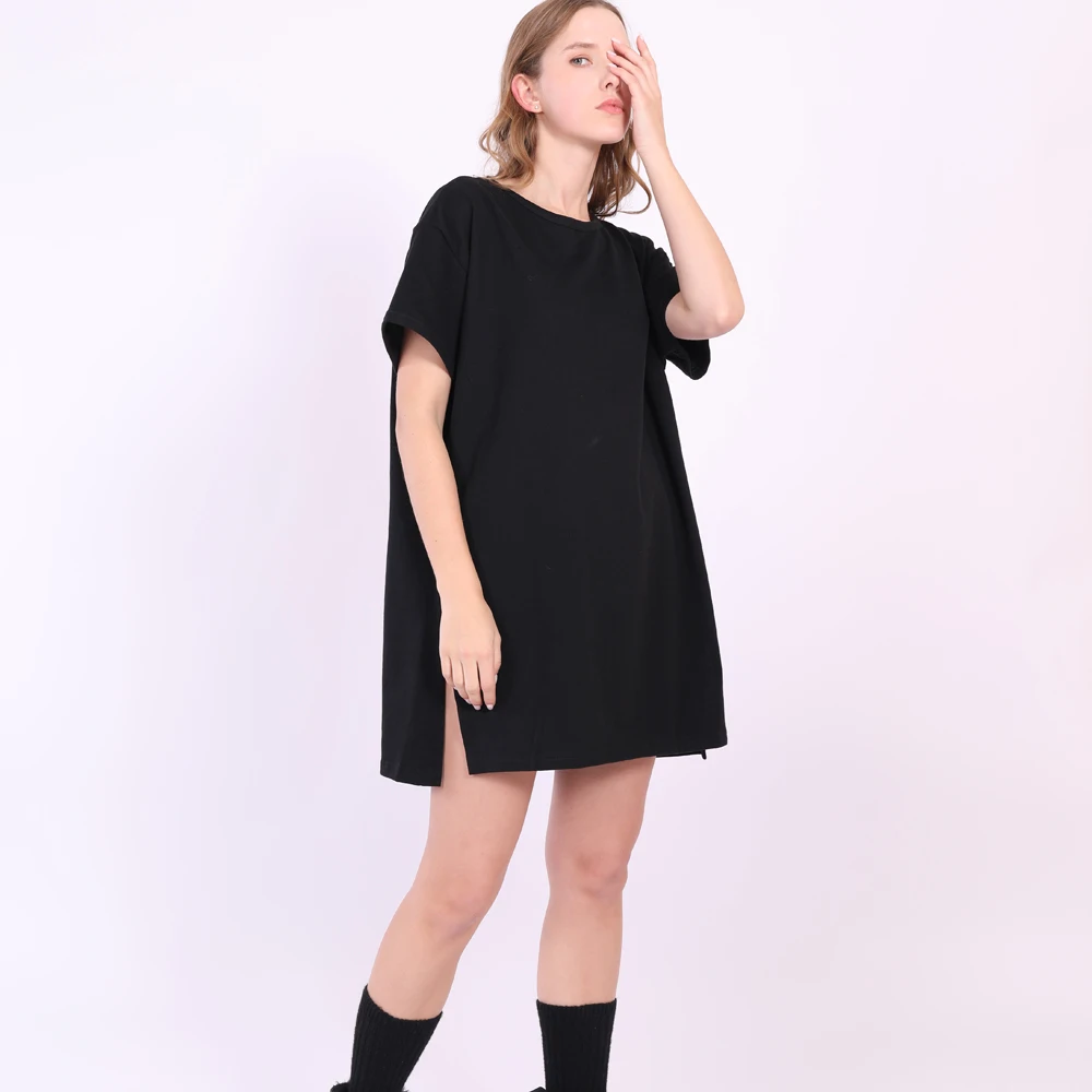 Базовое хлопковое длинное платье-футболка, женское летнее платье с крыльями летучей мыши, эстетическая мода, винтажная повседневная, повседневная, черно-белая, с разрезом, футболки, топы, туники, большого размера