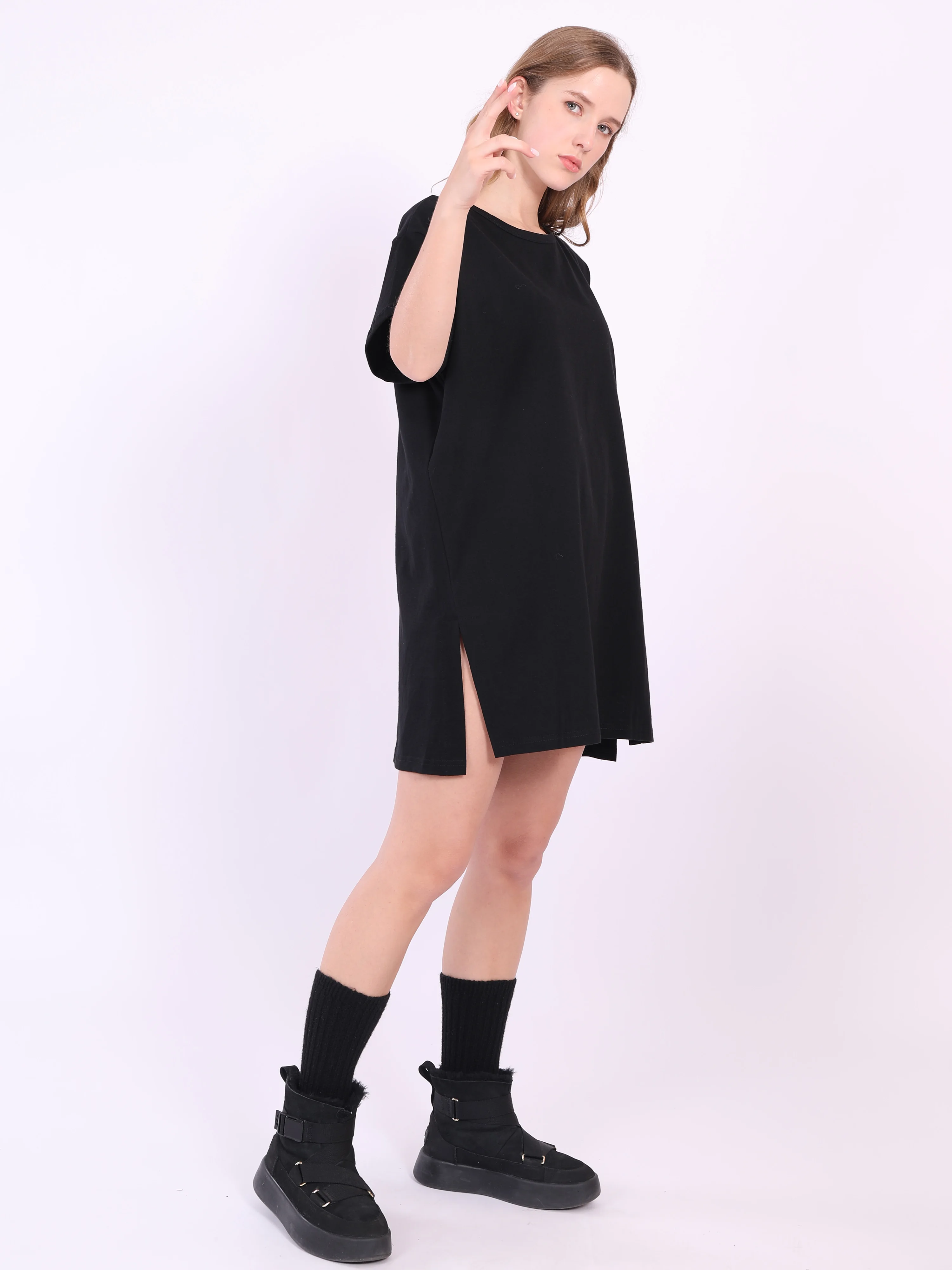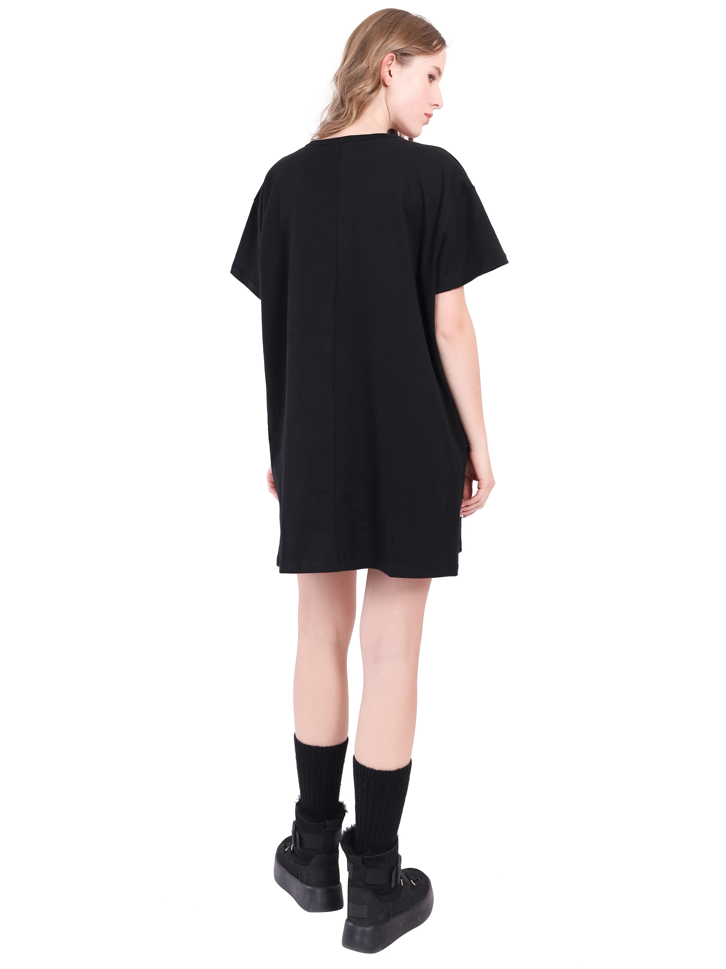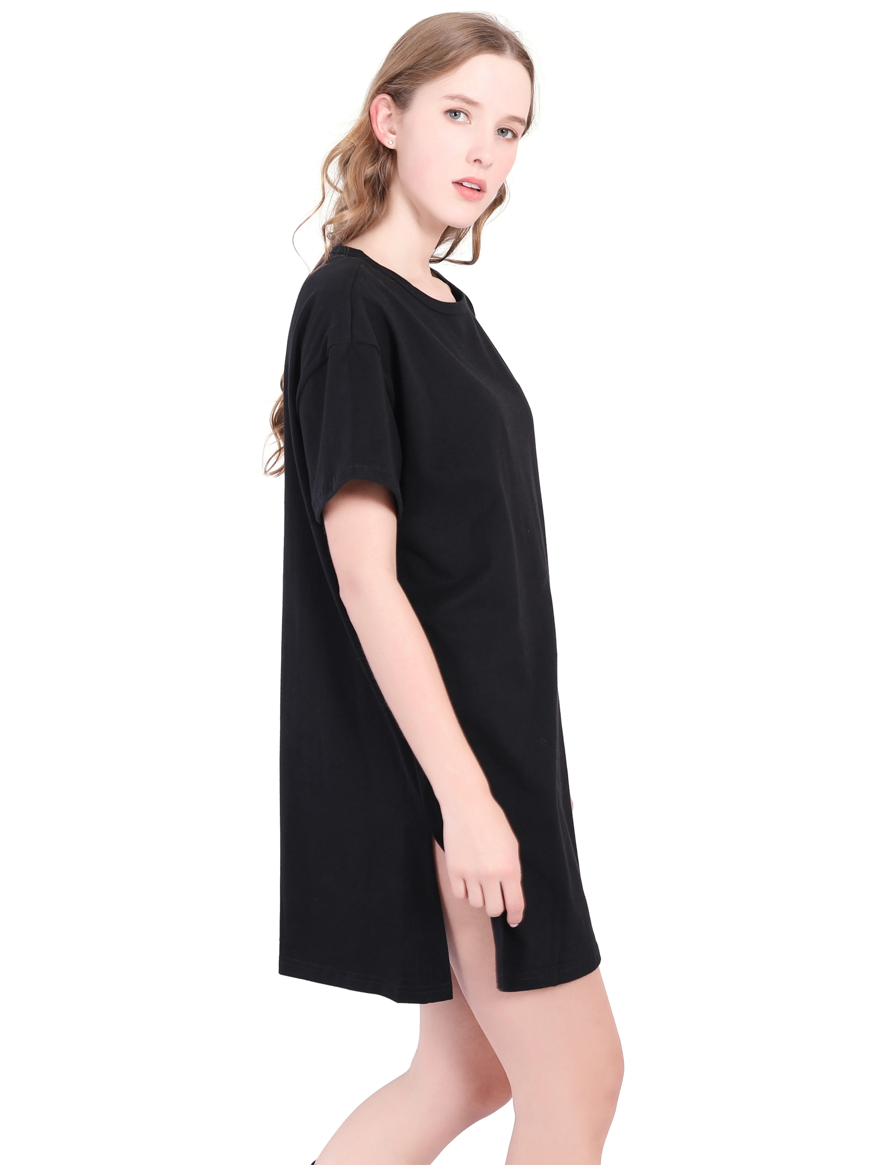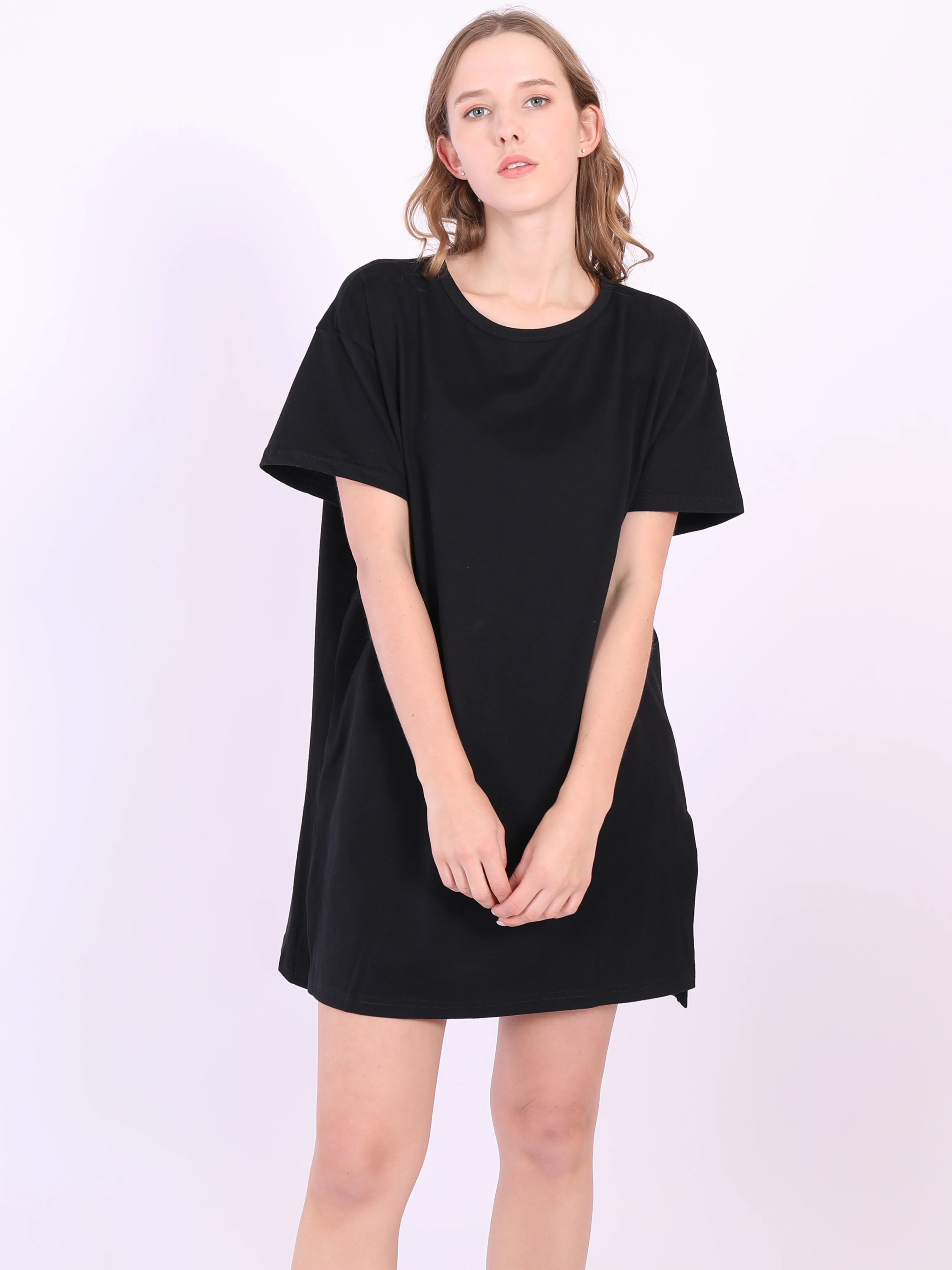 Базовое хлопковое длинное платье-футболка, женское летнее платье с крыльями летучей мыши, эстетическая мода, винтажная повседневная, повседневная, черно-белая, с разрезом, футболки, топы, туники, большого размера