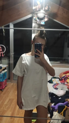 Натуральный плотный хлопок. Заказывала оверсайз, думала что длина будет как на картинке, но на рост 170 коротко, плюс с боку разрез, так что как платье носить нельзя. Но как футболка отлично
