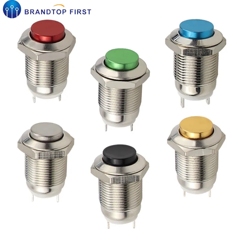 3V 5V 9V 12V 24V 220V Выключатель без фиксации кнопочный переключатель с блокировкой 12 мм плоская головка фиксированная Кнопка Водонепроницаемый светодиодный металлический переключатель