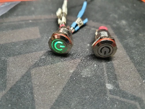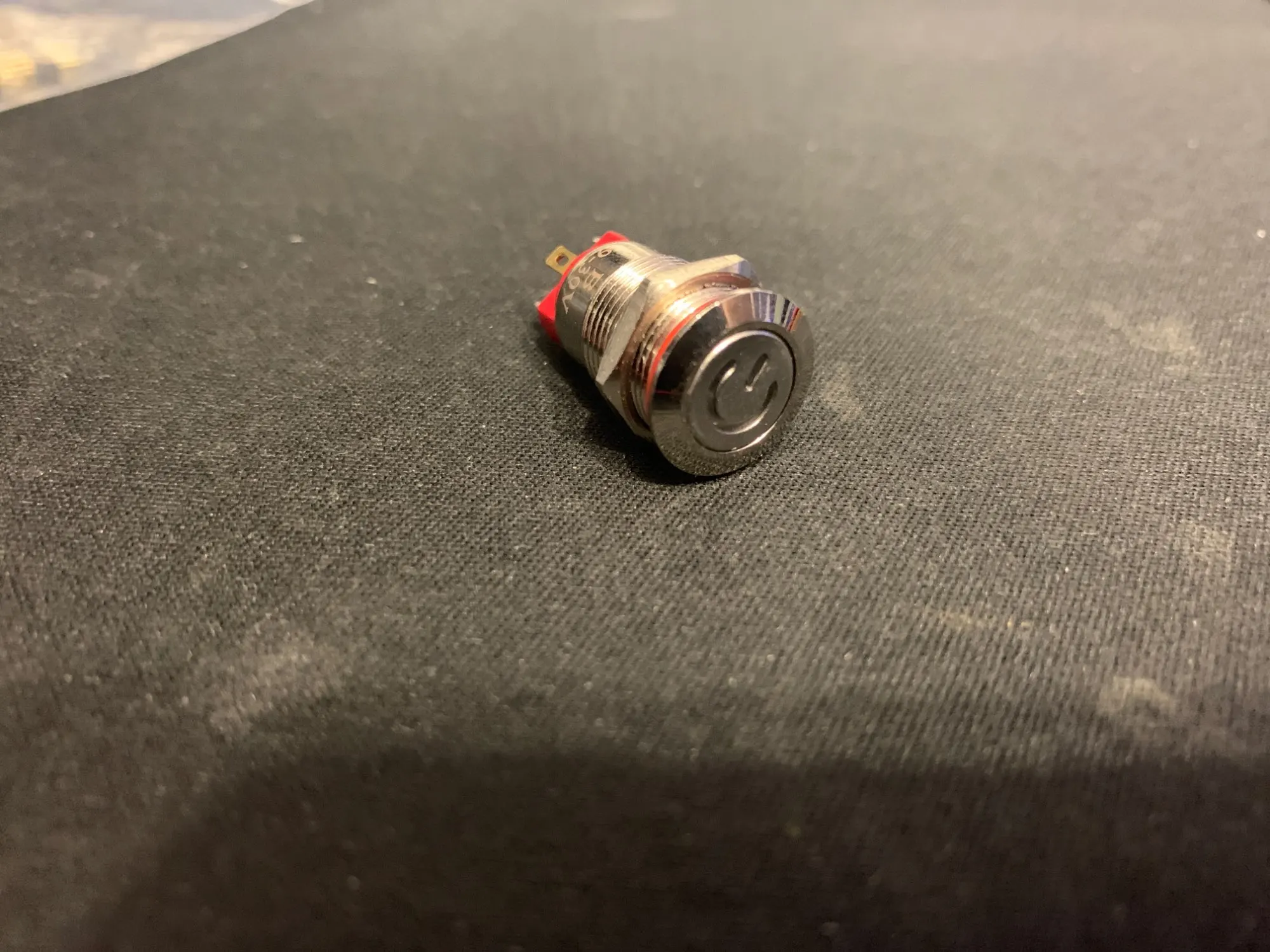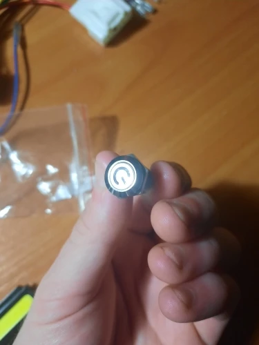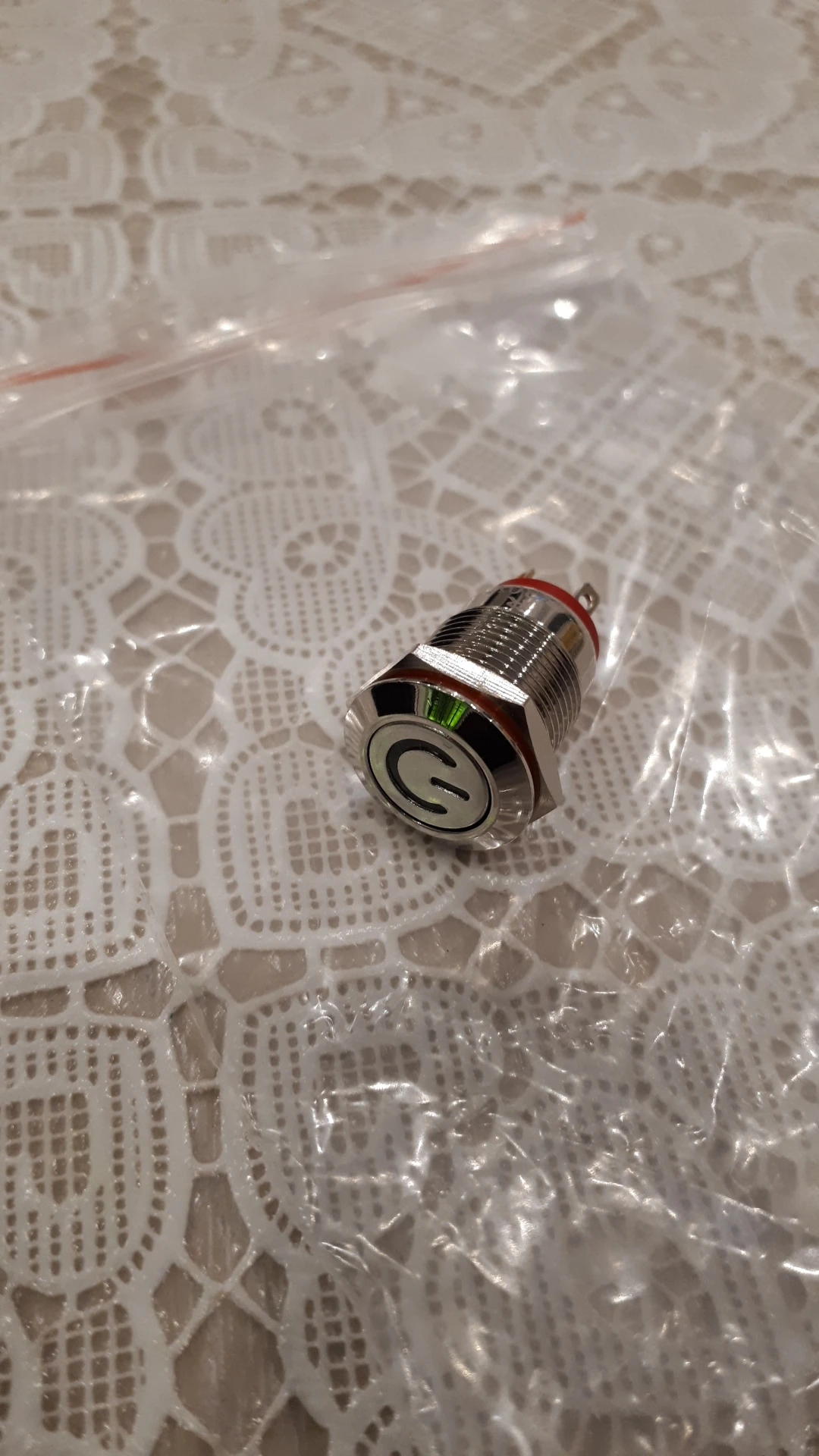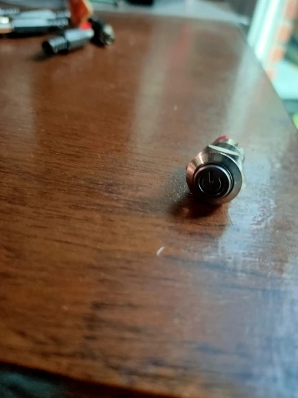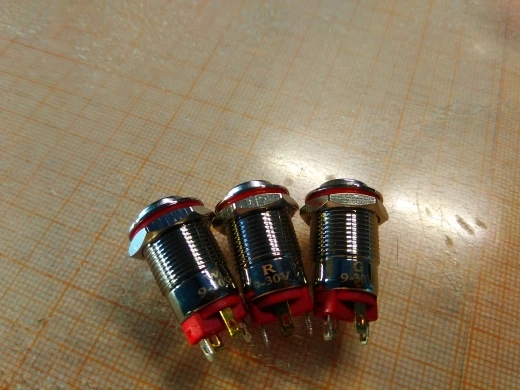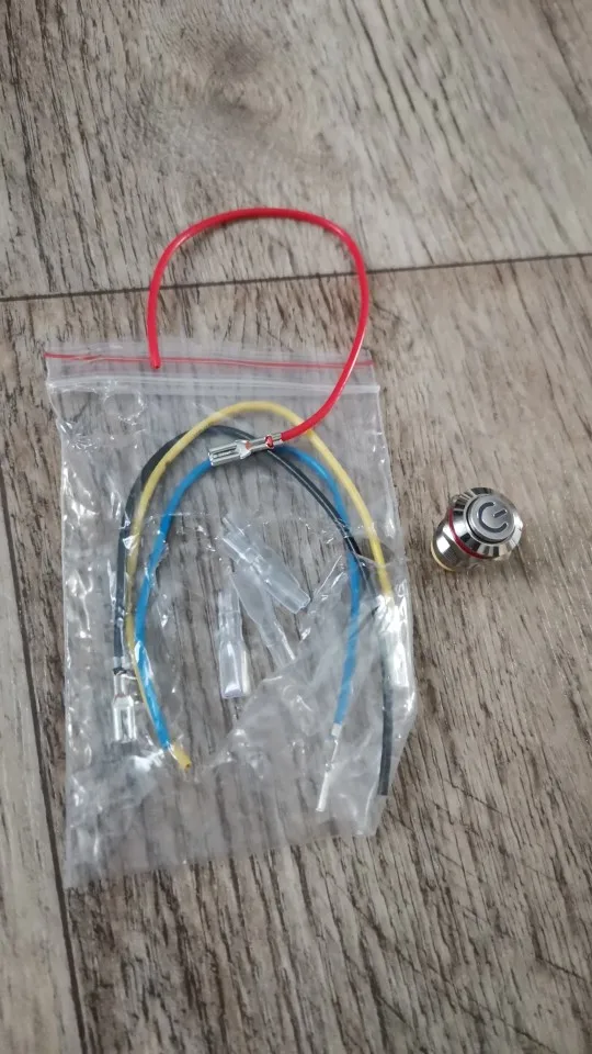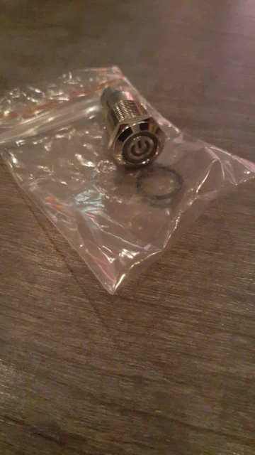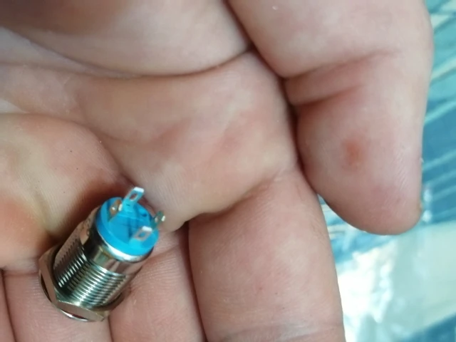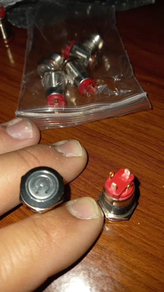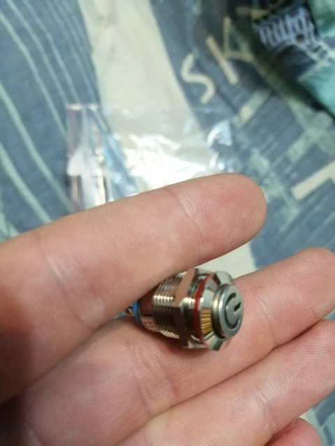 Доставили за 18 дней. Кнопка метал, обработана хорошо, диод достаточно яркий. Думал будет большего размера, сама кнопка ~8 мм в диаметре, только мизинцем нажимать)