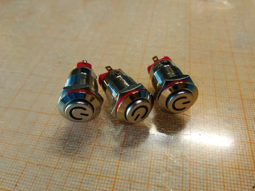 Кнопка на 12мм плоская (Flat) с фиксацией, фиксируется с провалом, не очень удобно включать немного глубоко фиксатор, палец толстоват для этой кнопочки, хотя пальцы не толстые. Сейчас понимаю лучше бы заказал которая с выступом (Extended). В общем сойдёт, что купил то получил.
