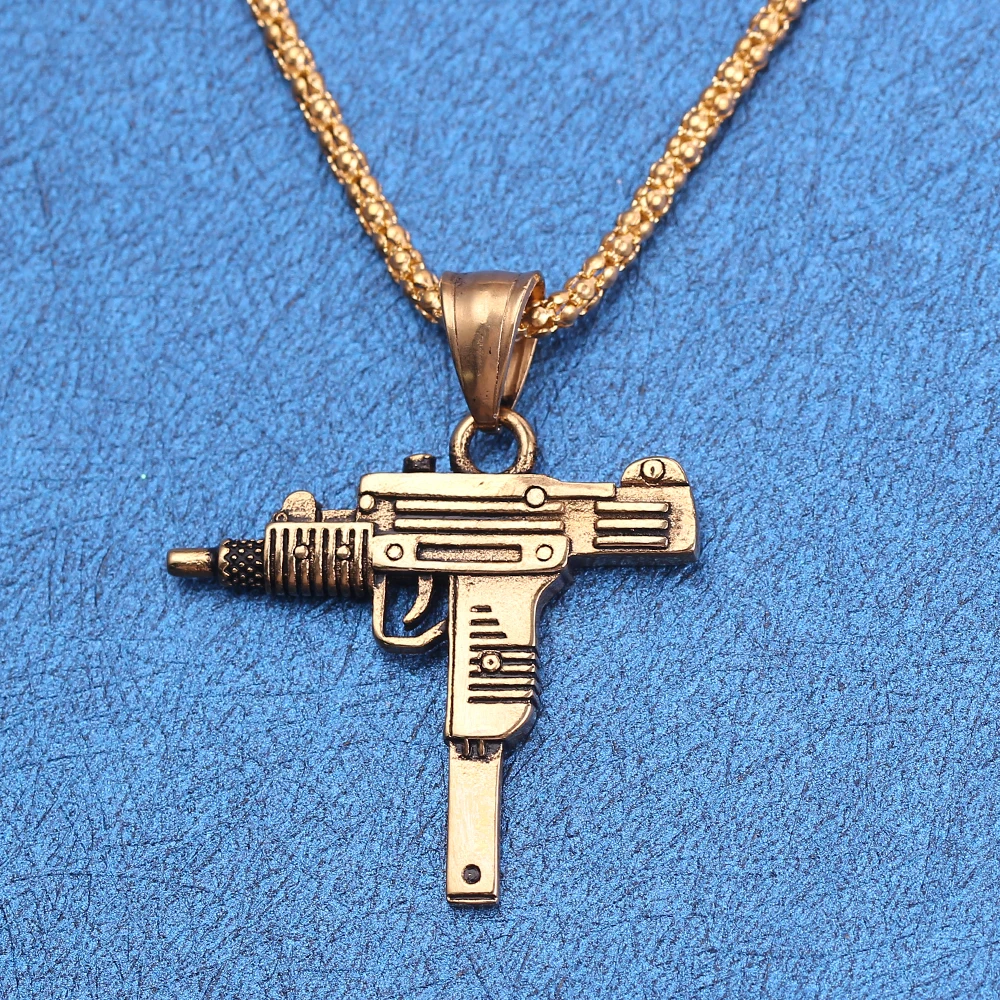 Лидер продаж ожерелье с подвеской в виде пистолета пулемета УЗИ Модные мужские аксессуары в стиле хип-хоп цепочка с франко-танцами длинное ожерелье с подвеской