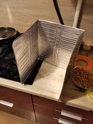 Прочитав отзывы о том, что приходит в отличном состоянии, всё-таки решила купить. Какого же было моё разочарование, когда обнаружила жутко помятый уголок. Выпрямить его до конца так и не удалось. Второй момент, у меня почти все сковородки диаметром 28 см, так что этот экран мал и мешает во время готовки. Если только купить две штуки и разложить по всему периметру плиты. Впечатление двоякое. Цена явно завышена. Второй раз за такую стоимость однозначно не куплю.