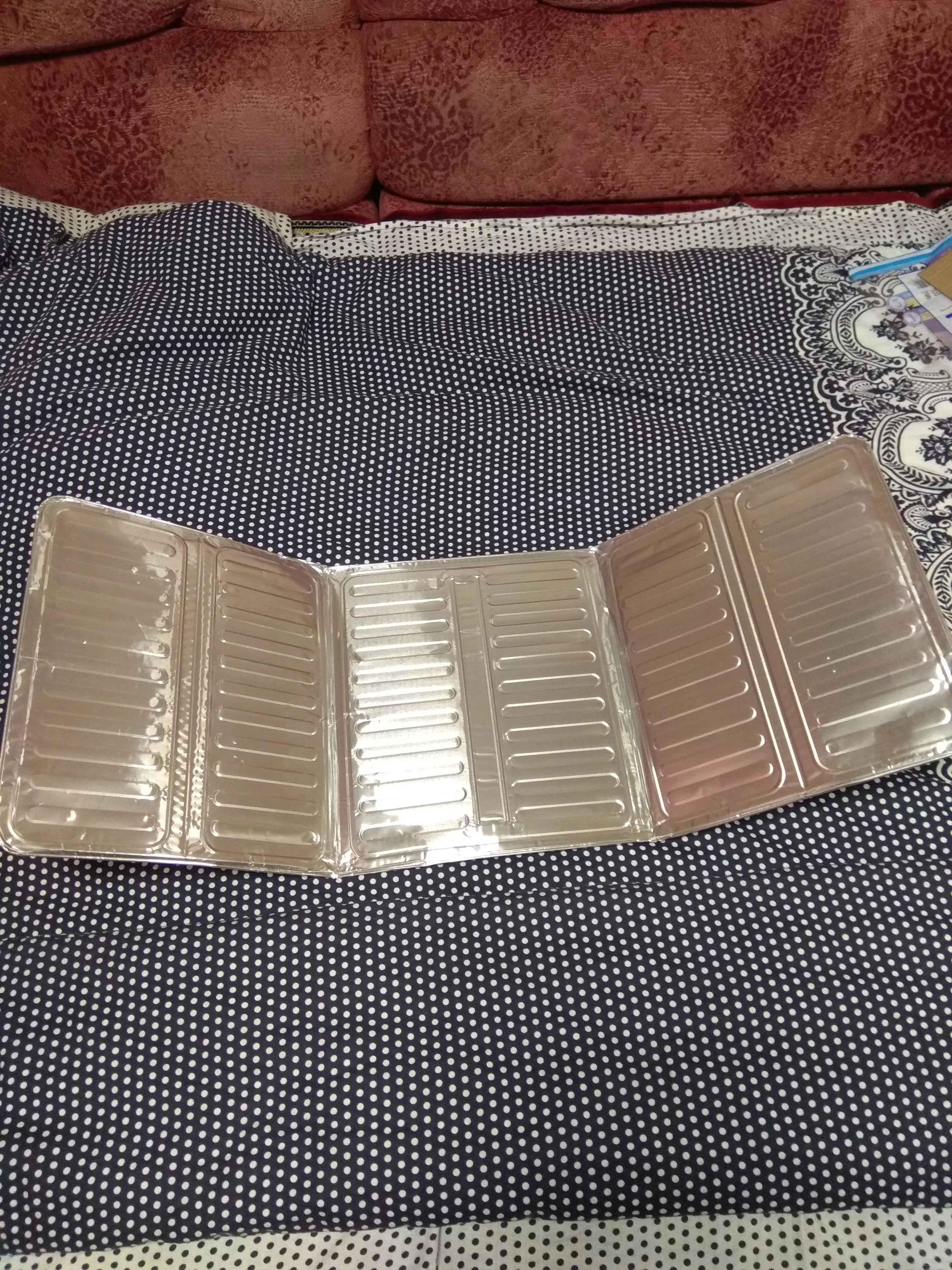 товар очень низкого качества. Сделан из формованой алюминиевой фольги. фольга чють потолще шоколадной обертки. Упаковано было с виду нормально, зажато между двух мягких пластин , но этого не хватило. Все пришло помято и разбито. Все углы смяты. пользоваться конечно можно, но эстетики никакой. Для такой вещи цена слишком завышена. от рекламы очень сильно отличается. Знал бы результат не брал бы.