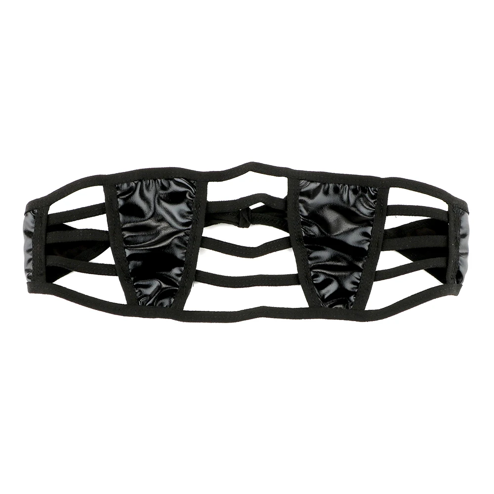 Комплект эротического нижнего белья, бюстгальтер + стринги, 2 шт.компл., из лакированной кожи