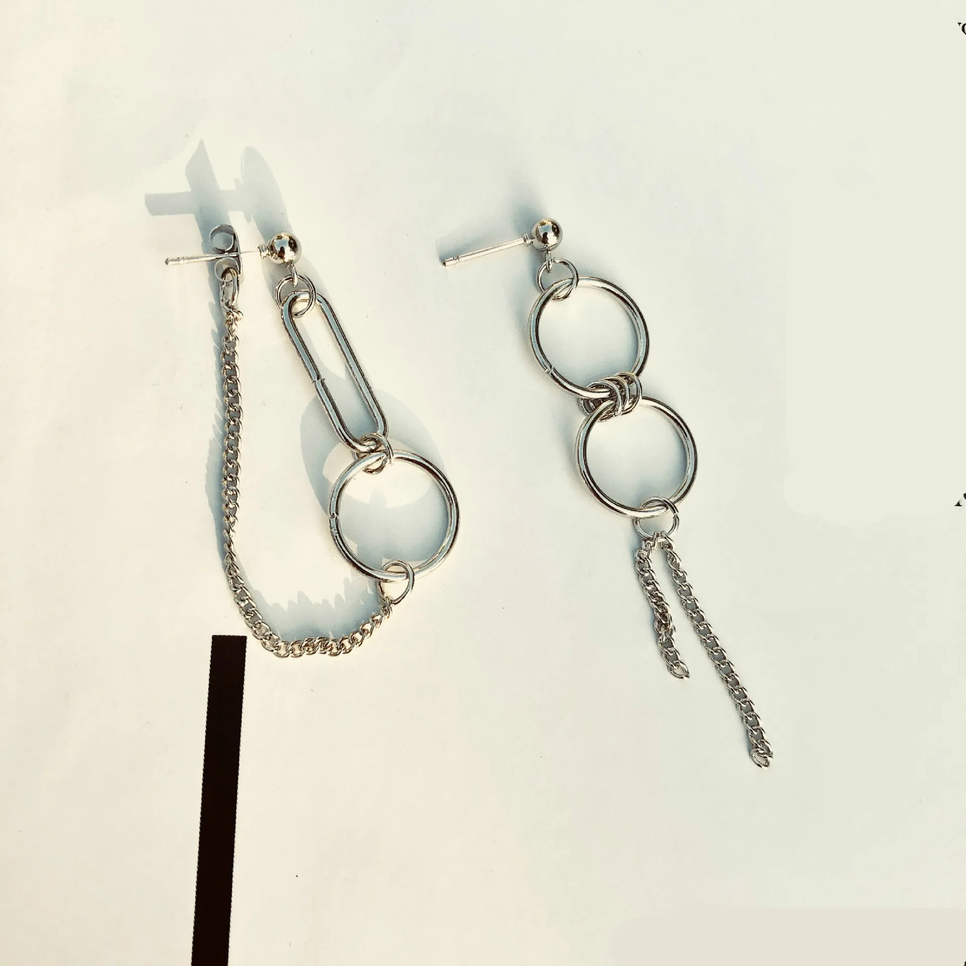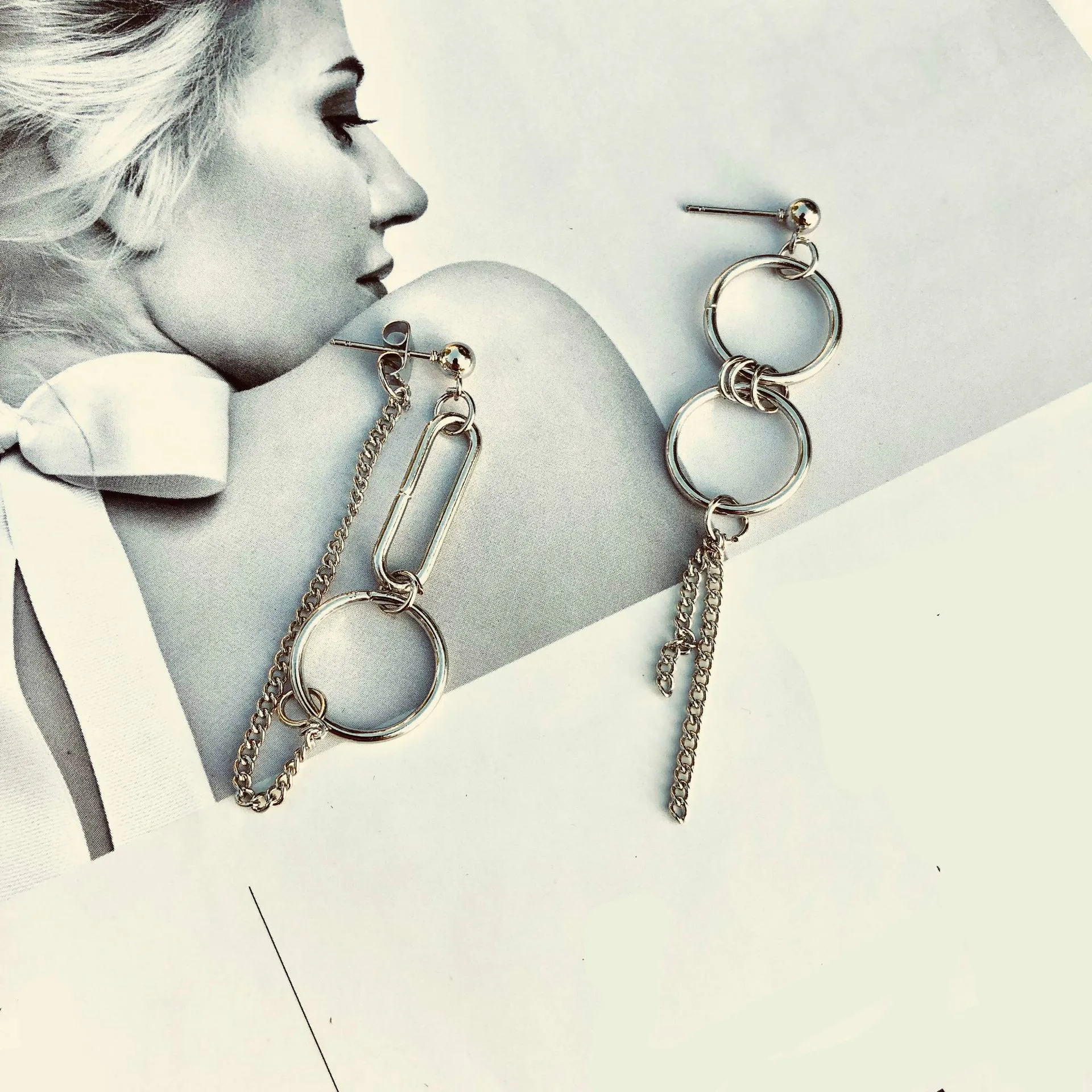 Женские серьги с круглыми цепочками, асимметричные серьги в стиле панк, Корейская версия