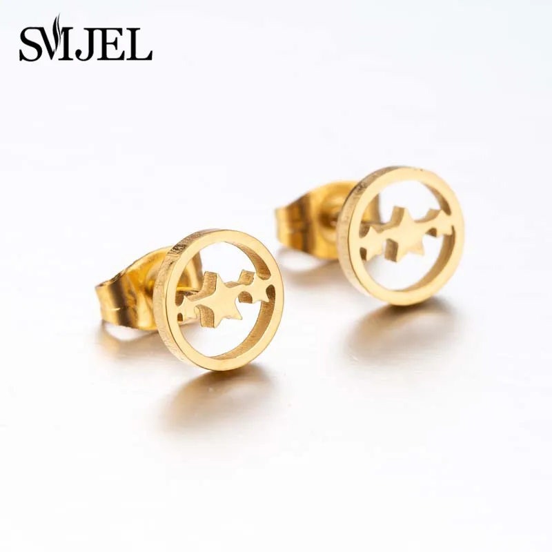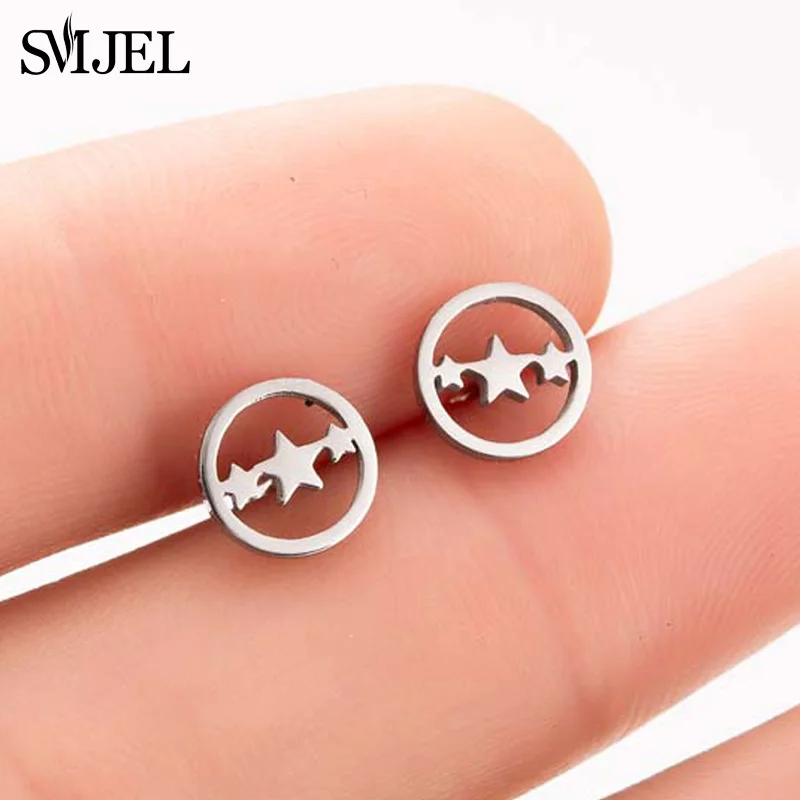 Женские серьги-гвоздики SMJEL, круглые серьги-гвоздики из нержавеющей стали с геометрическим узором, в винтажном стиле