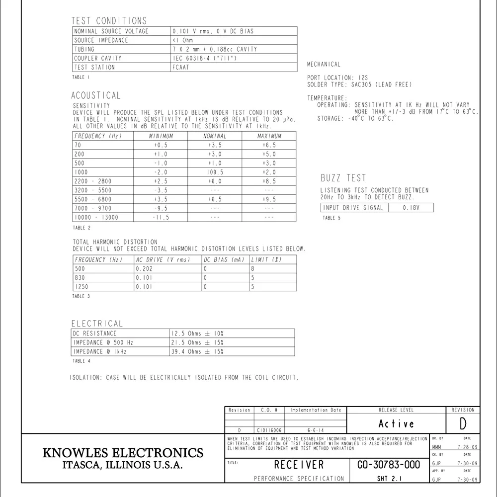 GQ-30783 Knowles BA Driver IEM сбалансированный якорь драйвер приемник динамик