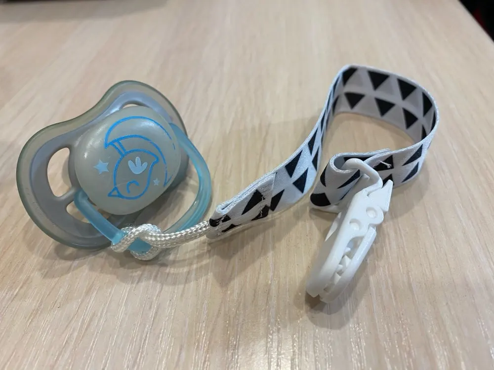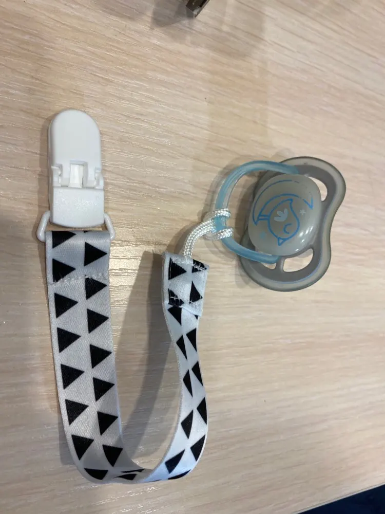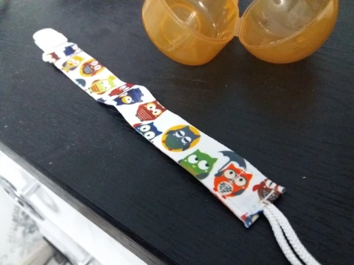 отличная вещица! не очень длинная. поэтому не страшно, что ребёнок задавится ей. и удобная, не как из бусин, которые обычно оказываются под малышом и давят . можно стирать зажим хорошего качества.