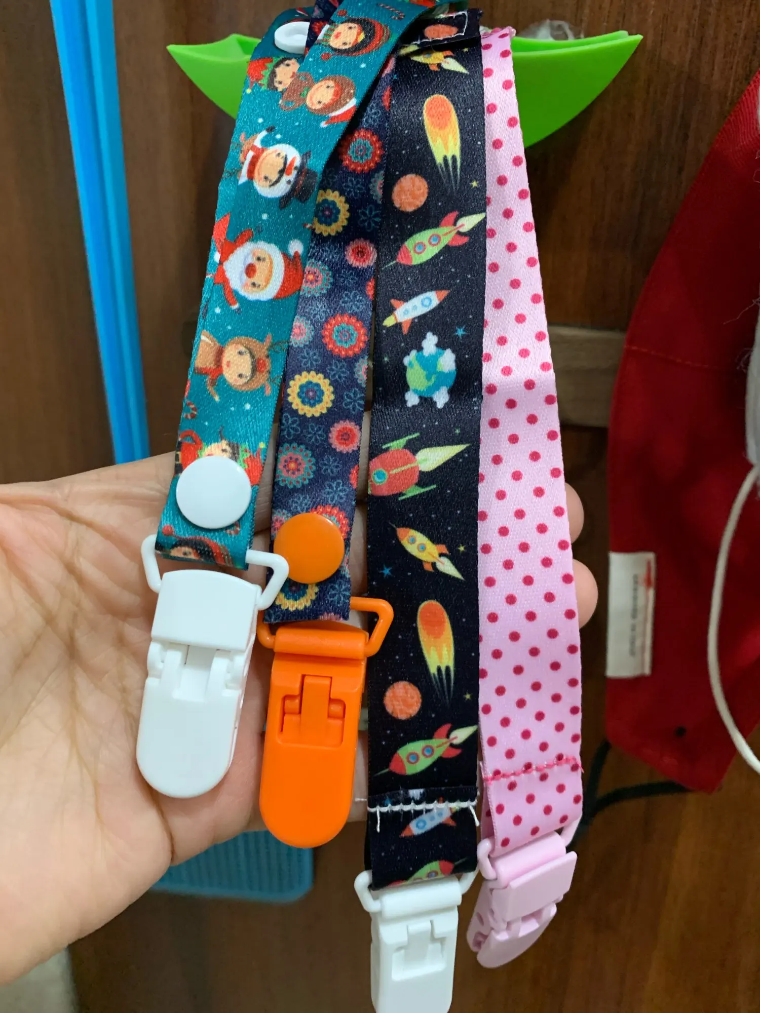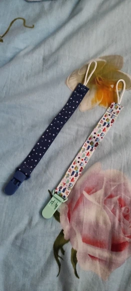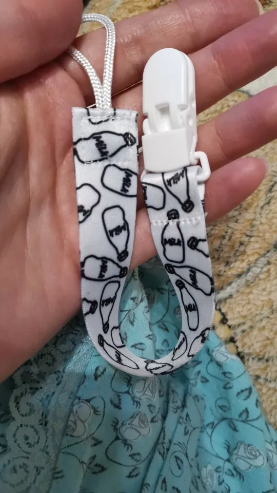 Товар 1: цепочка для пустышки на веревкеВозраст костюма: 0-3 годаМатериал: тканевая лента + пластик Длина * Ширина: Около 25,5*2 см Товар 2: цепочка для соски Длина: 20-32 см