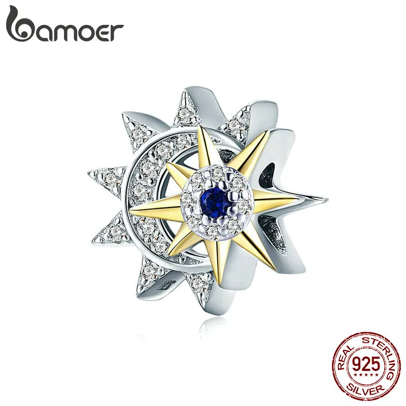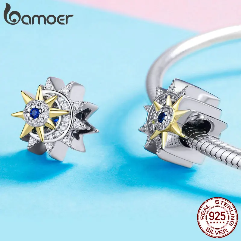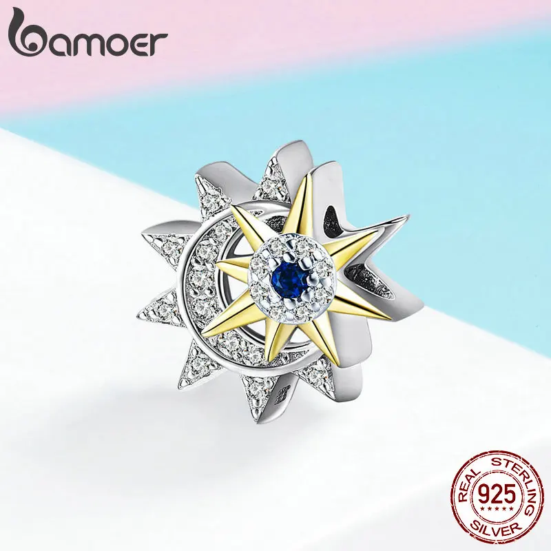 Женские браслеты BAMOER SCC1137, подвески из серебра 925 пробы с Луной и светящимися Фианитами, роскошные ювелирные изделия сделай сам