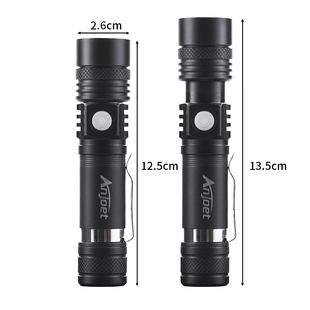 Anjoet USB Перезаряжаемый фонарик, светодиодный фонарик, масштабируемый, 3 режима, водонепроницаемый фонарик для 18650 с USB-кабелем, для кемпинга